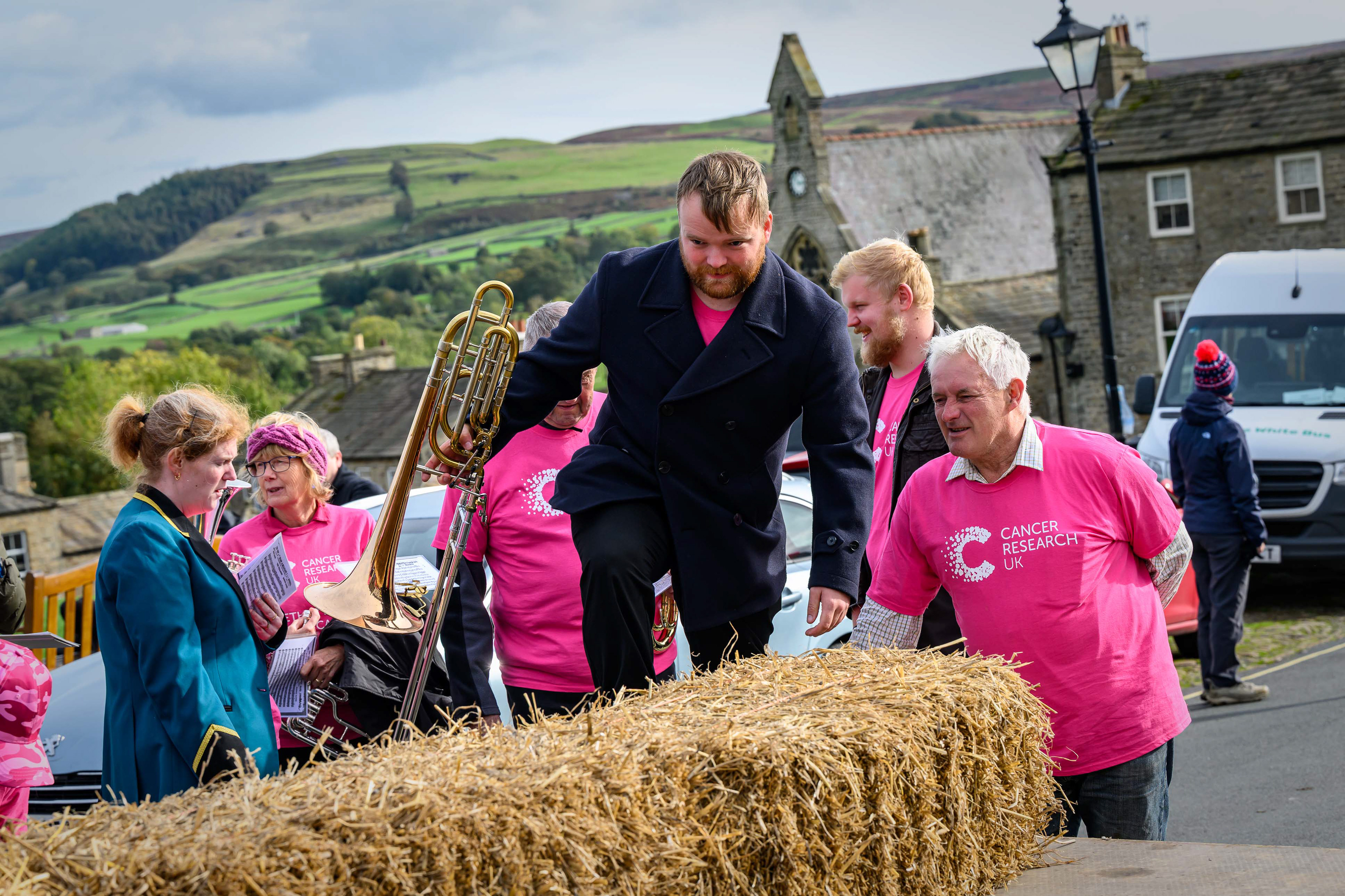 The village truly came alive in every shade of pink as participants gathered at The Black Bull to kick off the Pink Walk 2025. The air was filled with music and cheer, thanks to the brilliant Reeth Brass Band, whose lively tunes set the perfect tone for the walk.