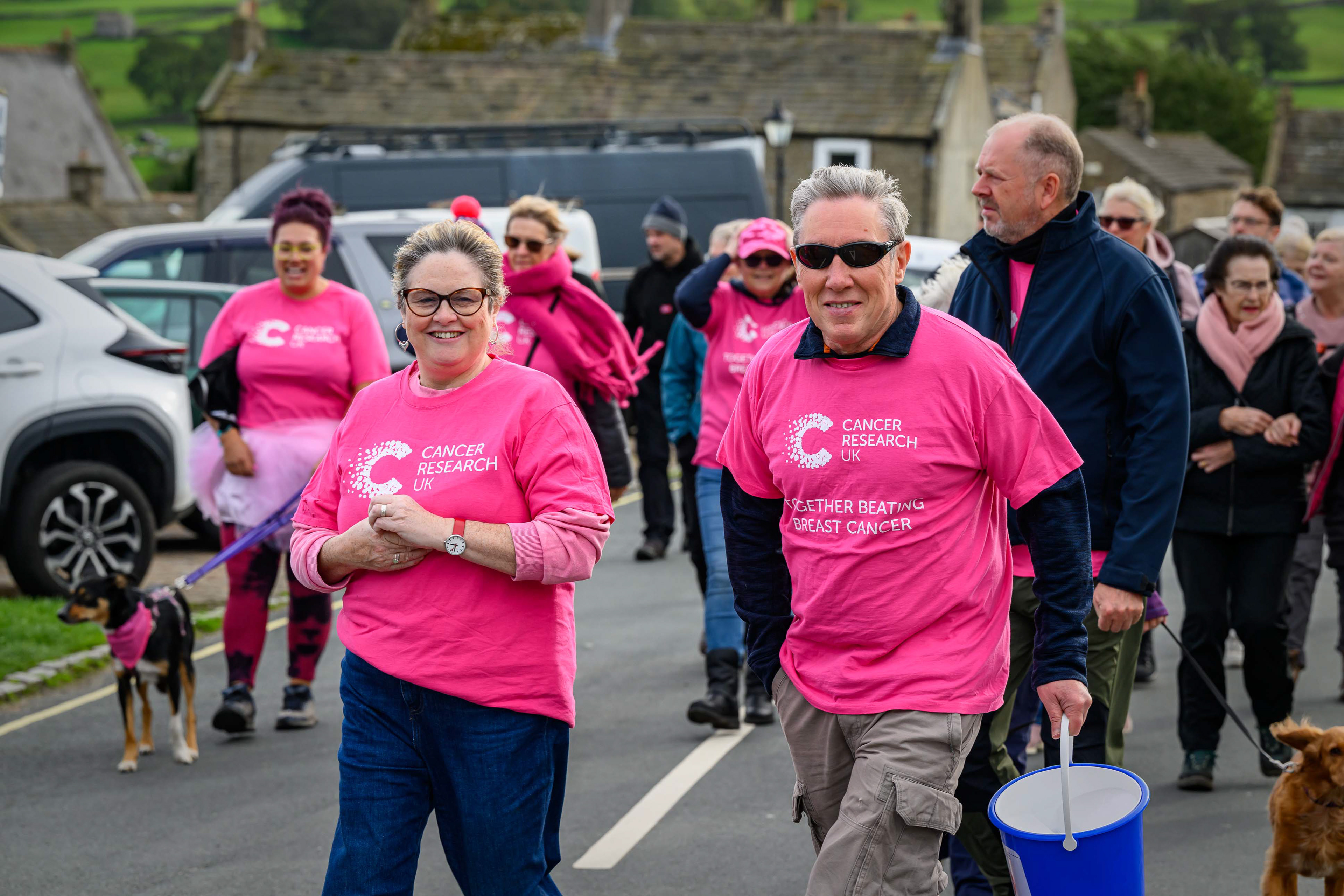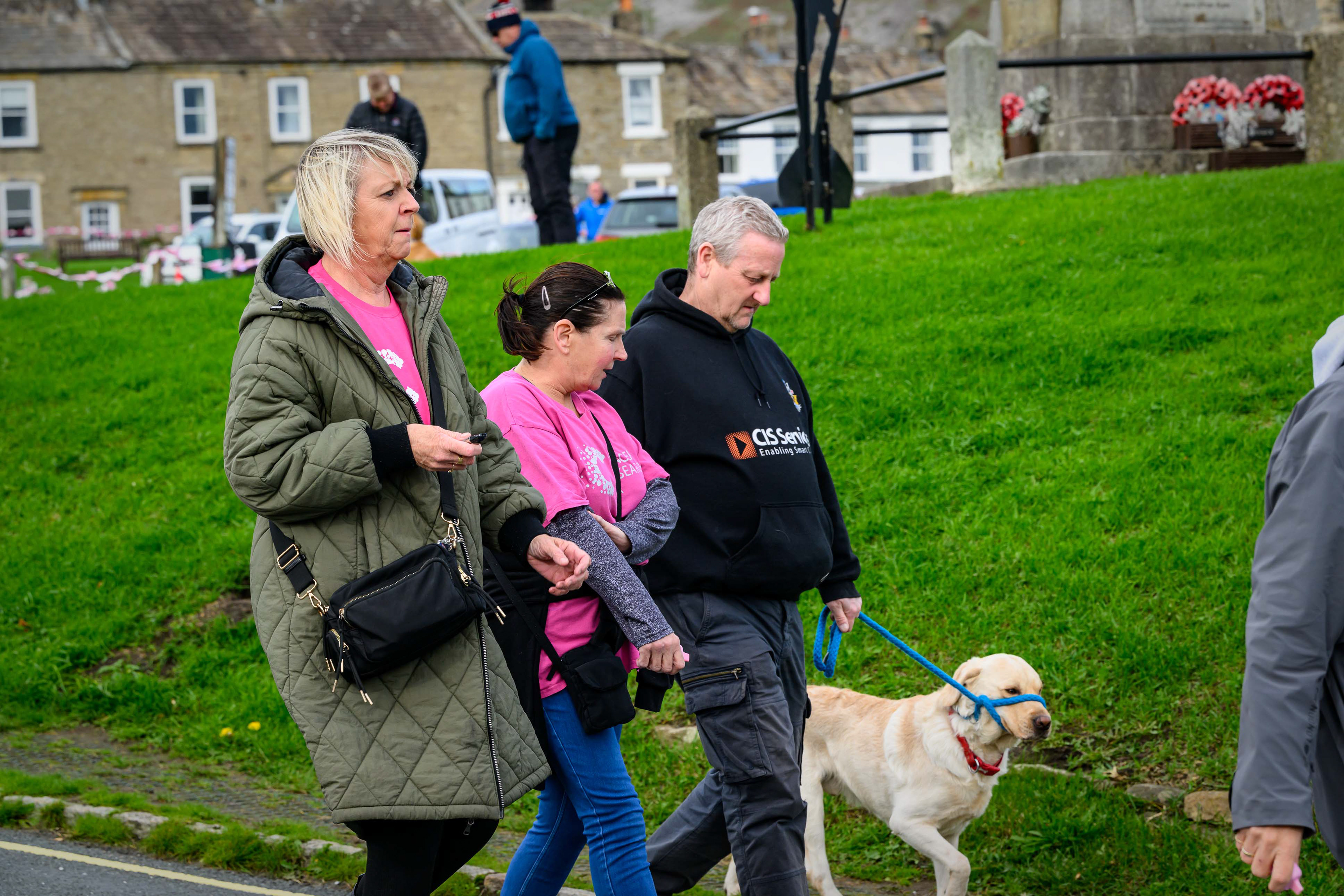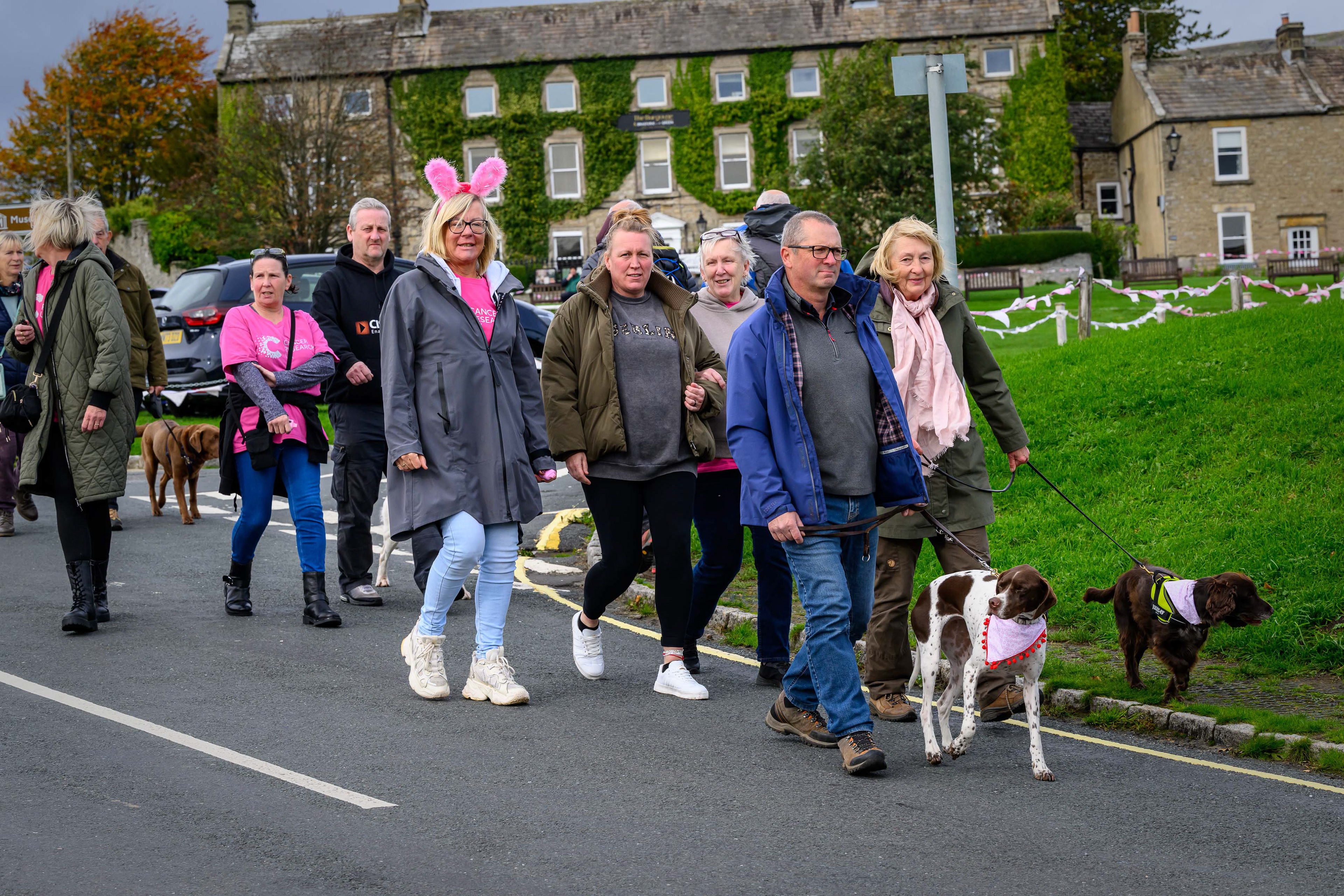 From pink t-shirts and bandanas to wagging tails and smiling faces, the scene was a heartwarming celebration of community spirit and generosity. Laughter and camaraderie echoed along the streets as walkers made their way to Grinton and back, stopping for a well-earned refreshment at The Bridge Inn. Every step of the way, it was clear that this was more than just a walk – it was a vibrant show of support for PINKtober and Cancer Research UK.