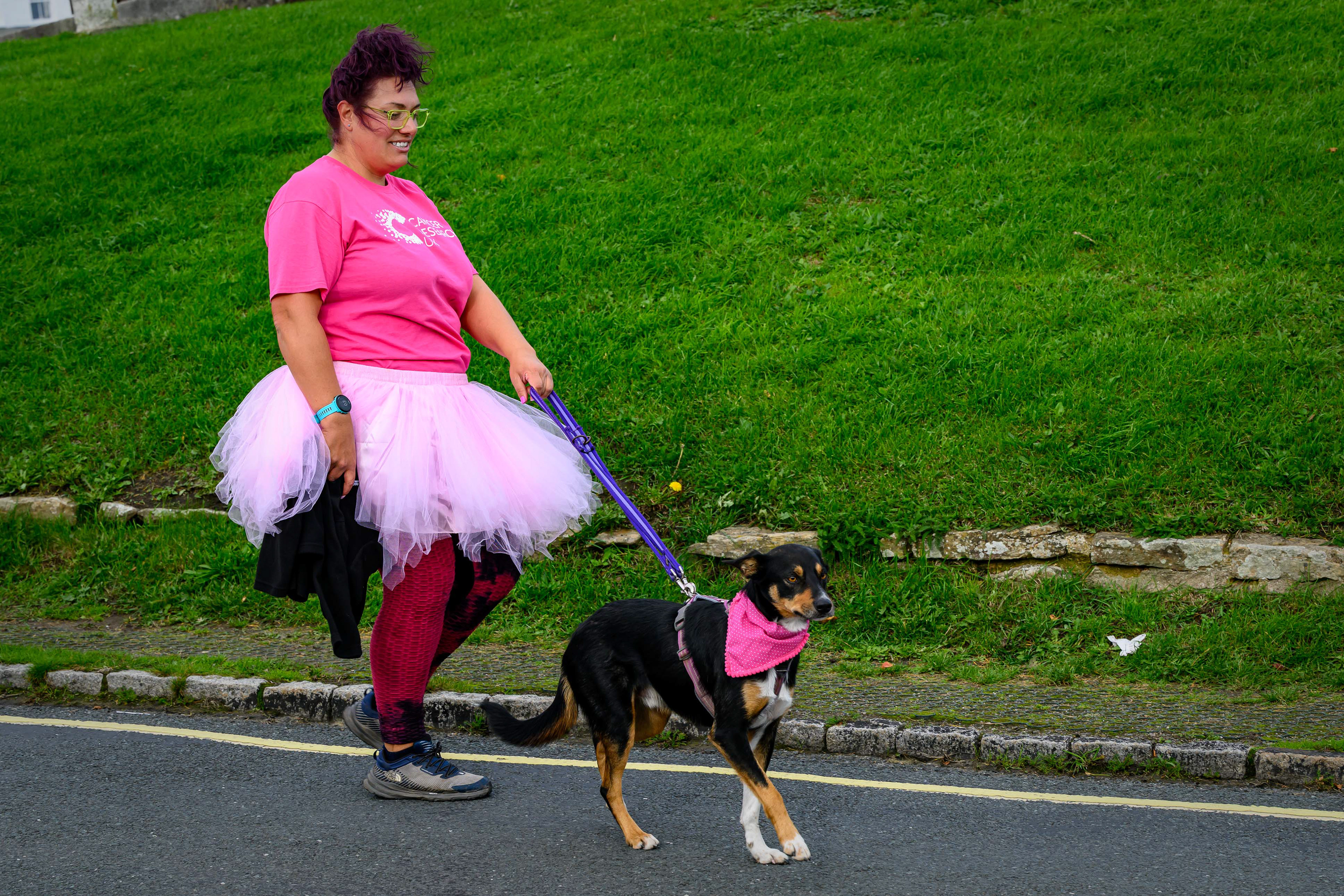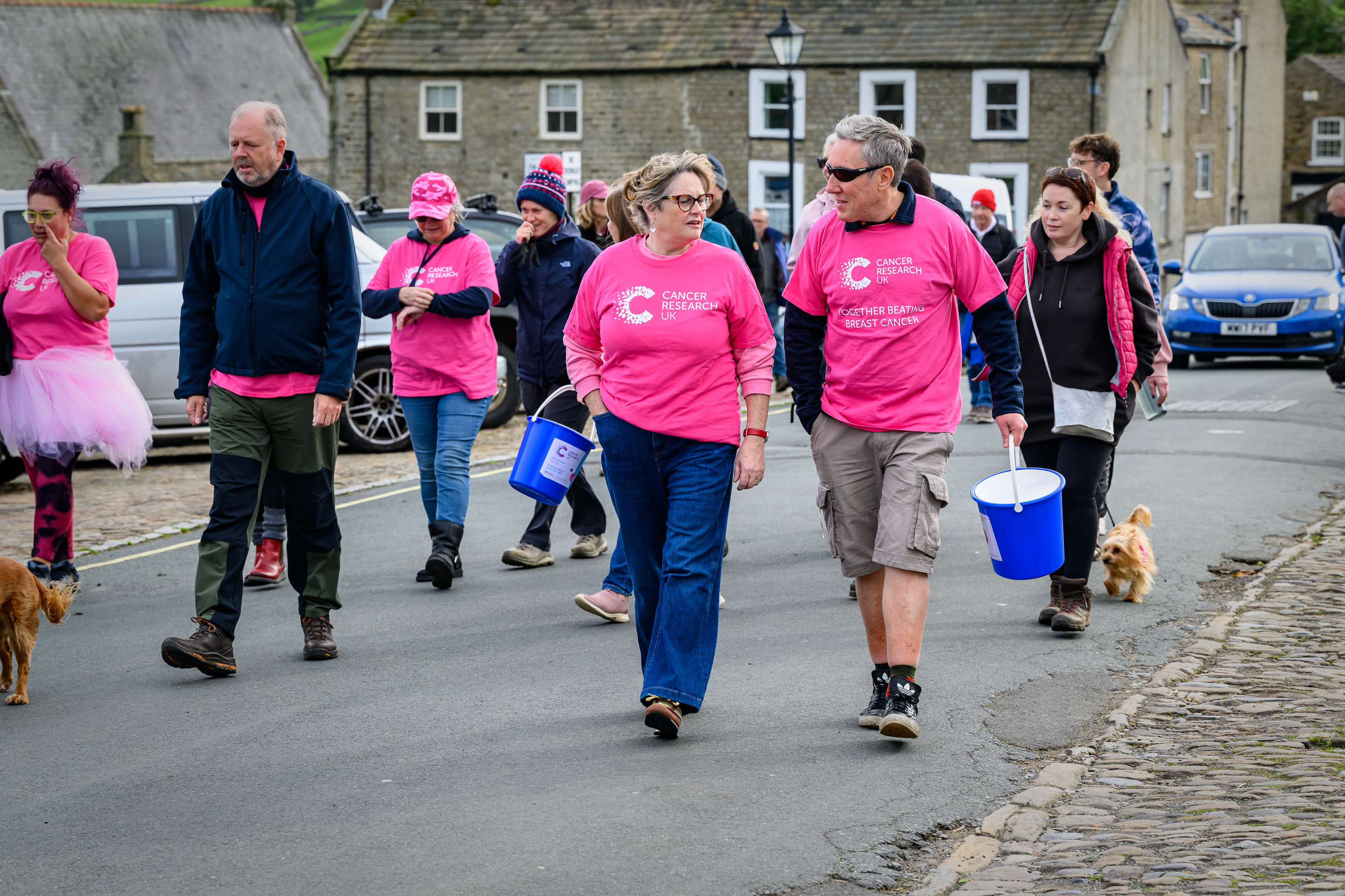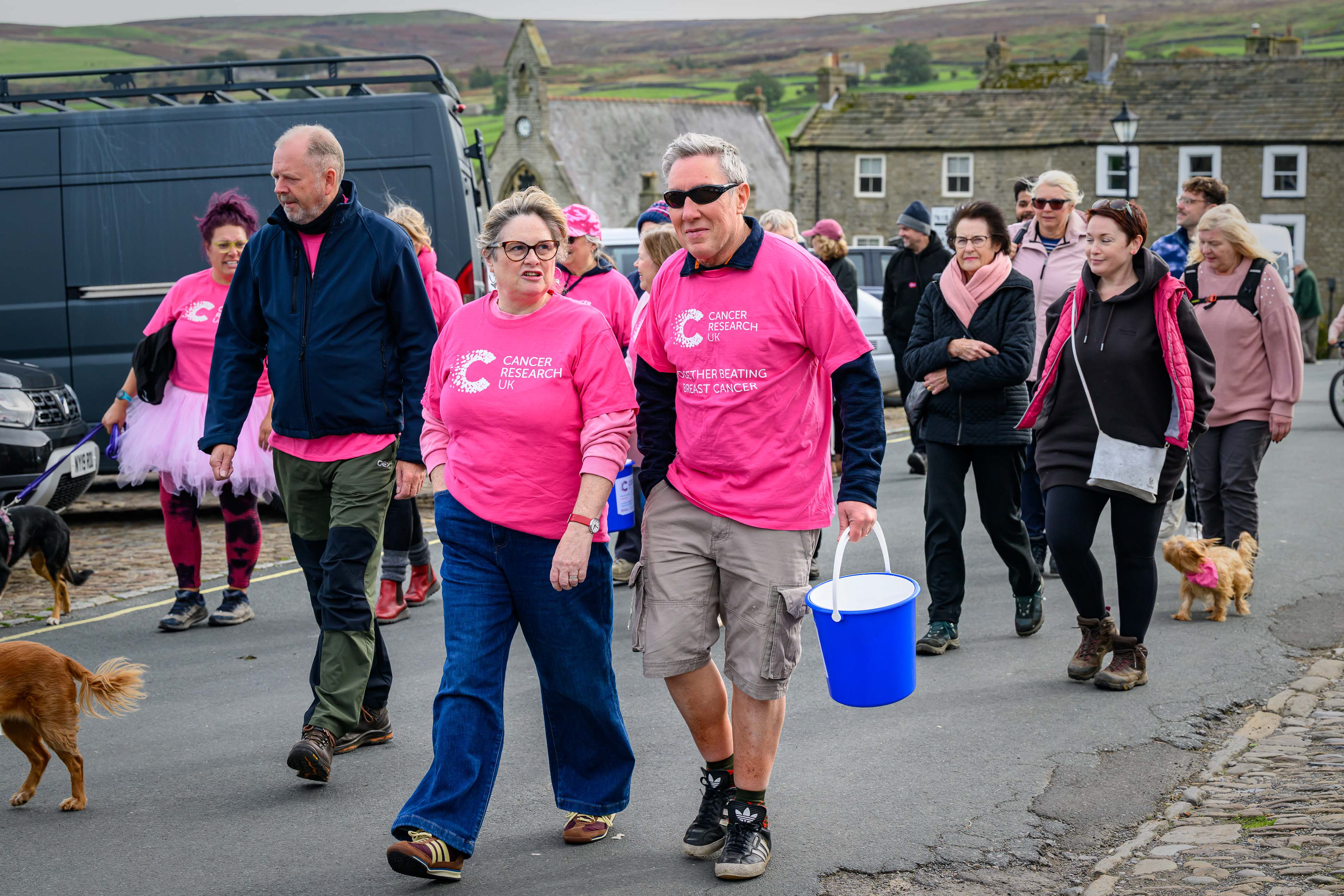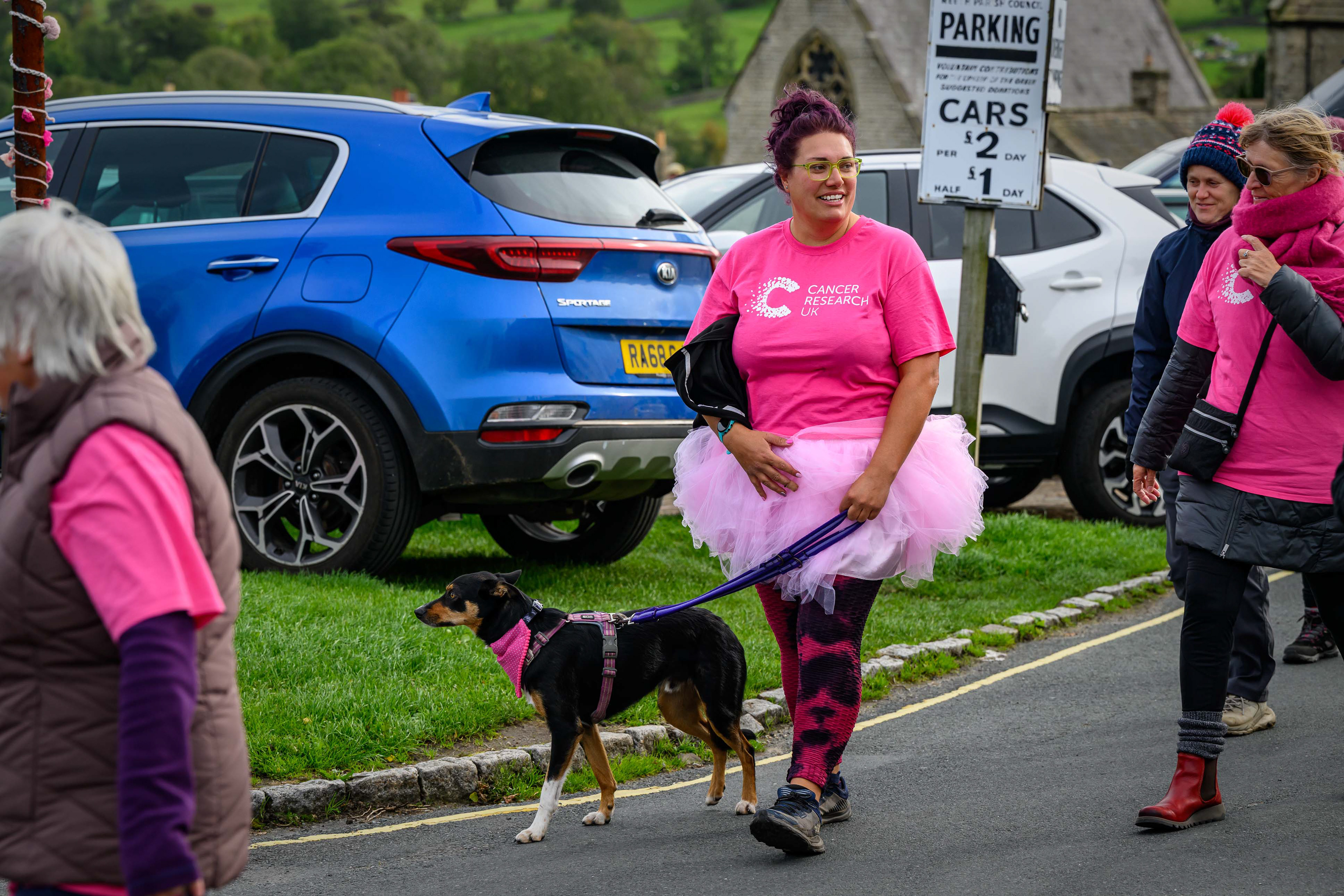 From pink t-shirts and bandanas to wagging tails and smiling faces, the scene was a heartwarming celebration of community spirit and generosity. Laughter and camaraderie echoed along the streets as walkers made their way to Grinton and back, stopping for a well-earned refreshment at The Bridge Inn. Every step of the way, it was clear that this was more than just a walk – it was a vibrant show of support for PINKtober and Cancer Research UK.
