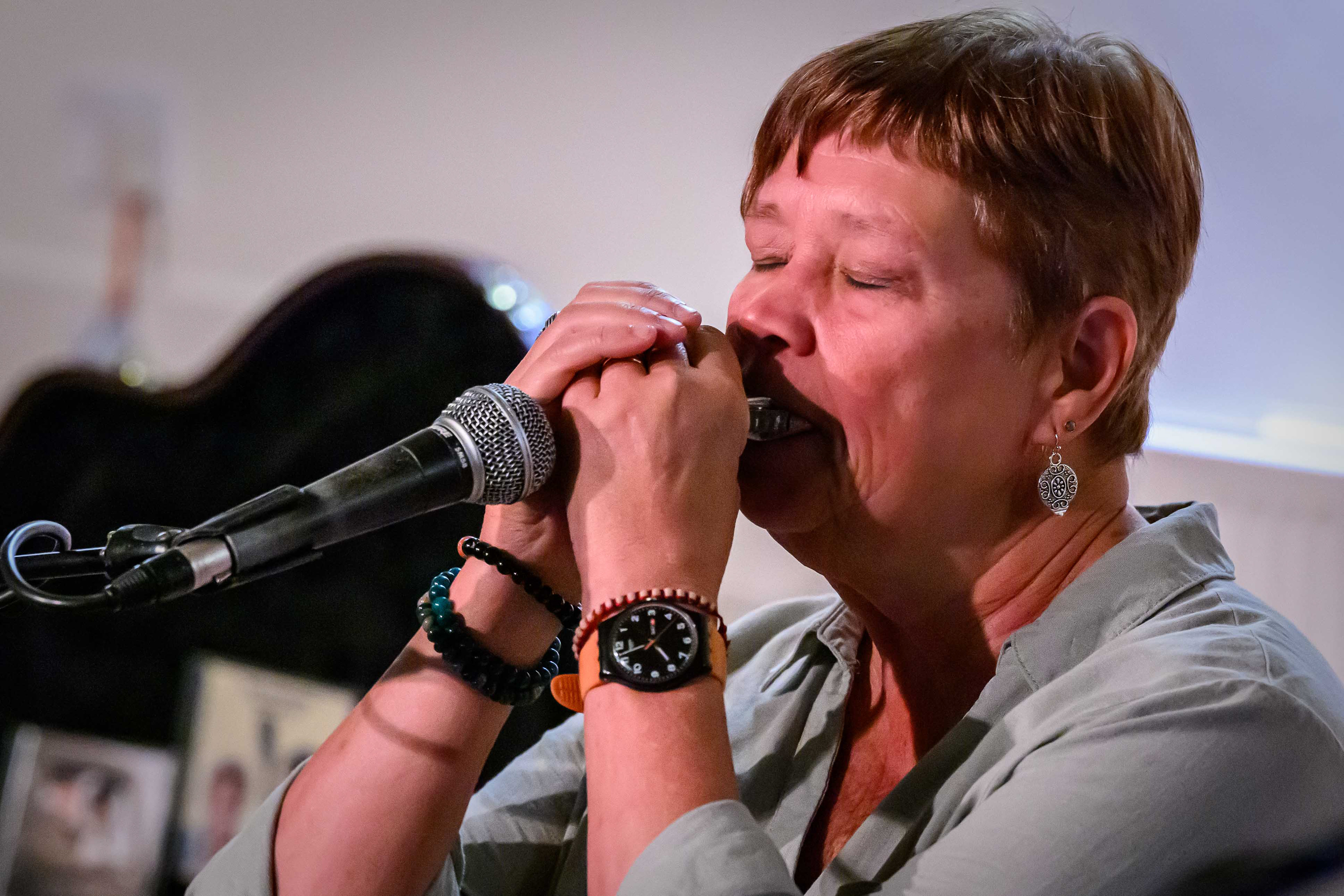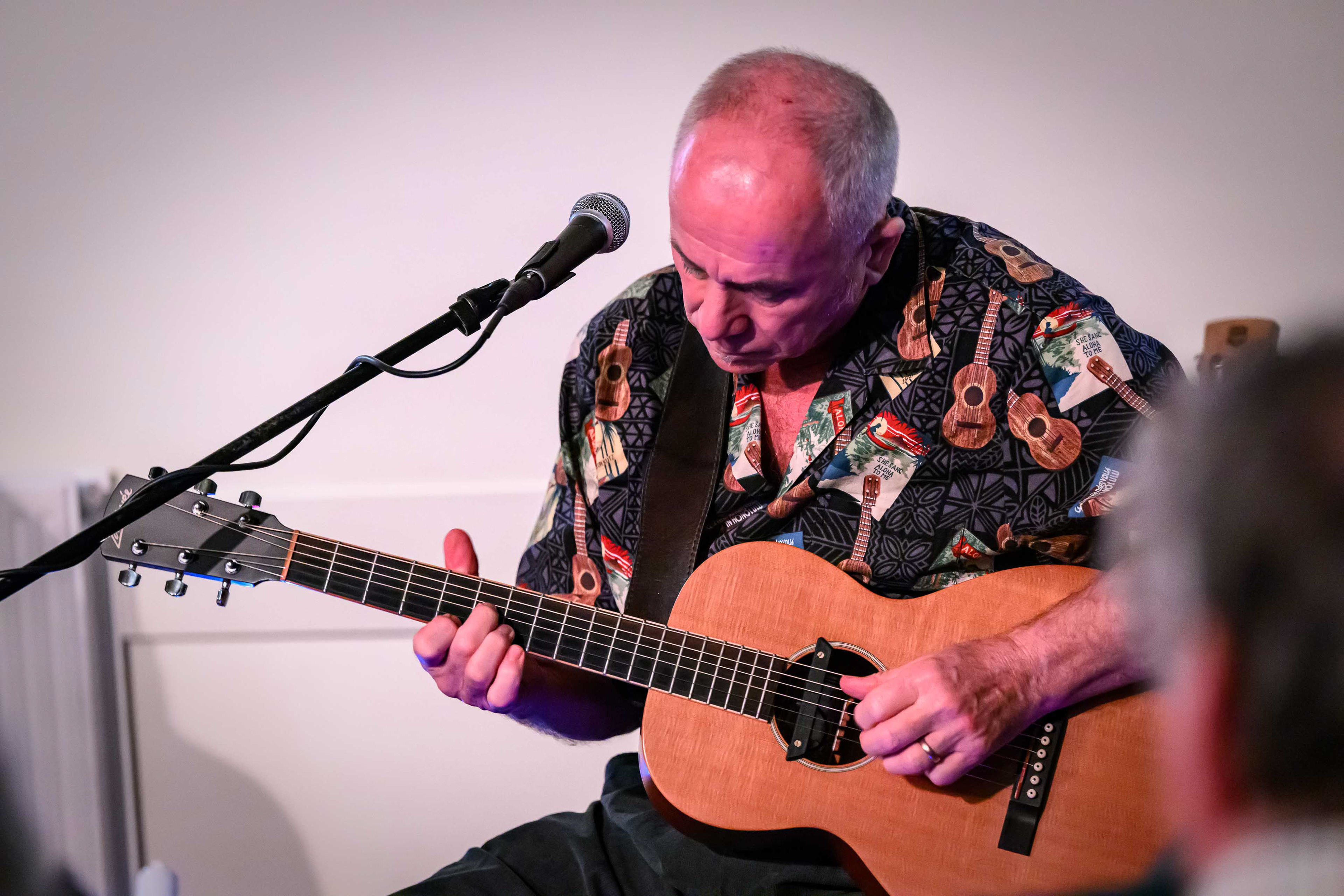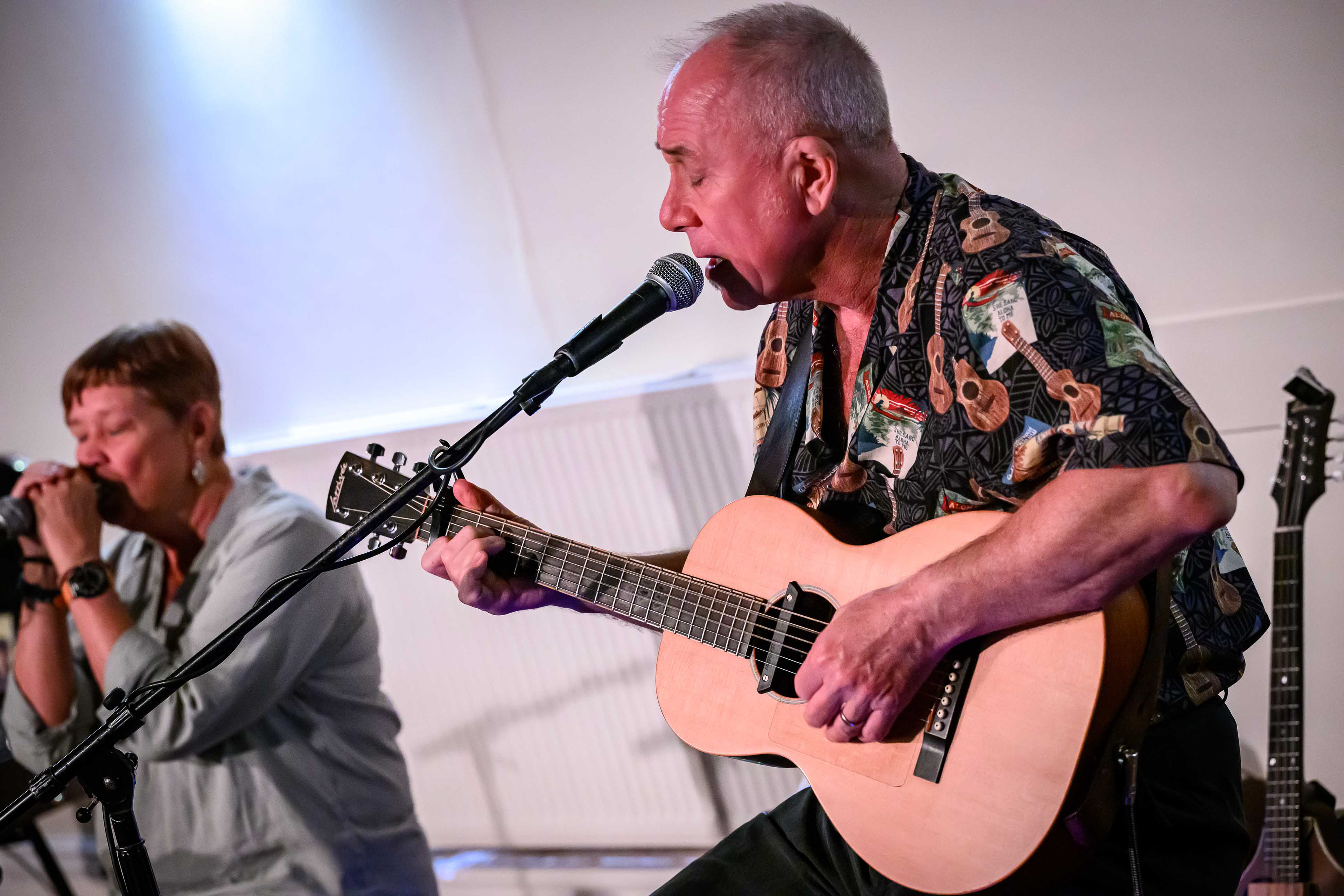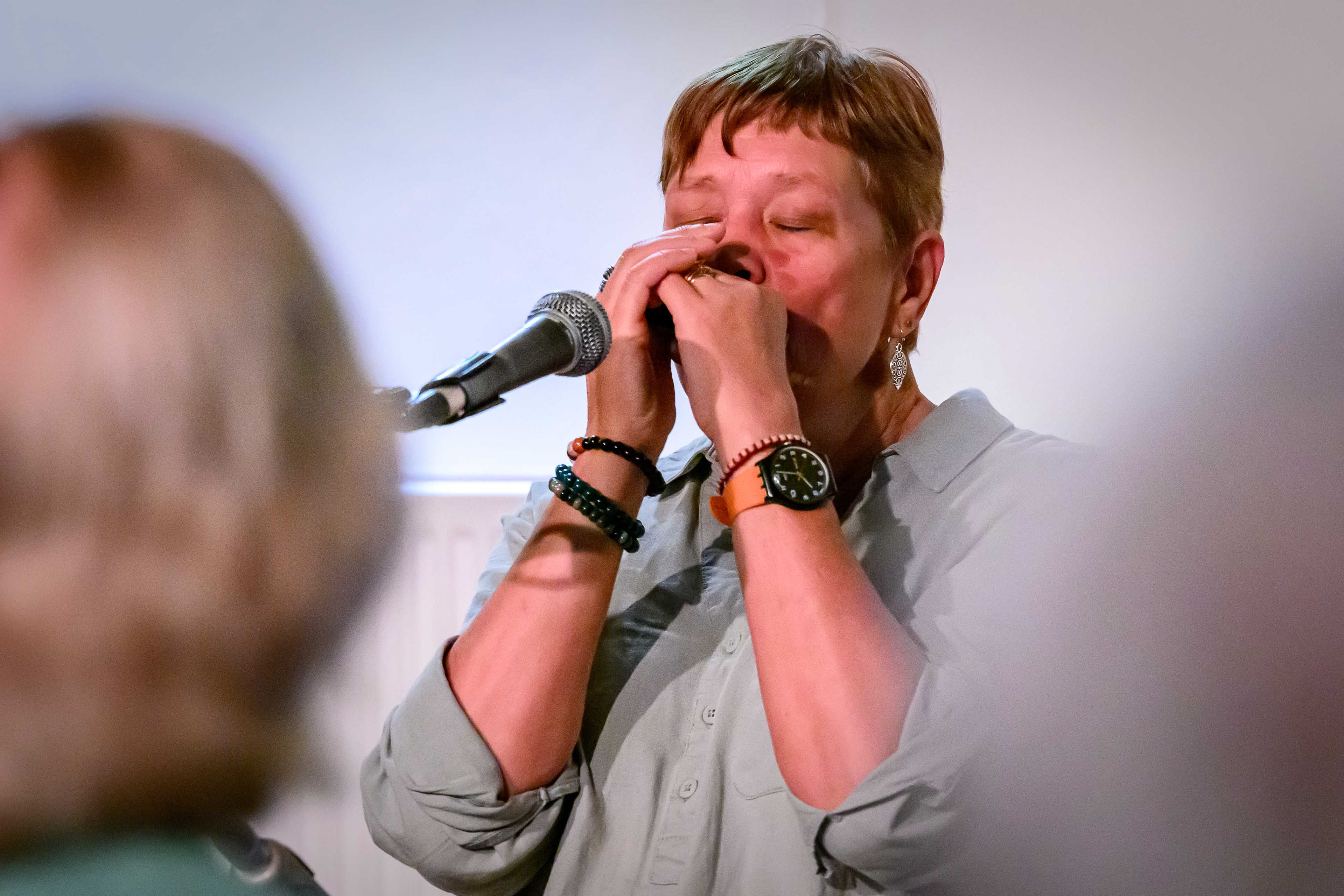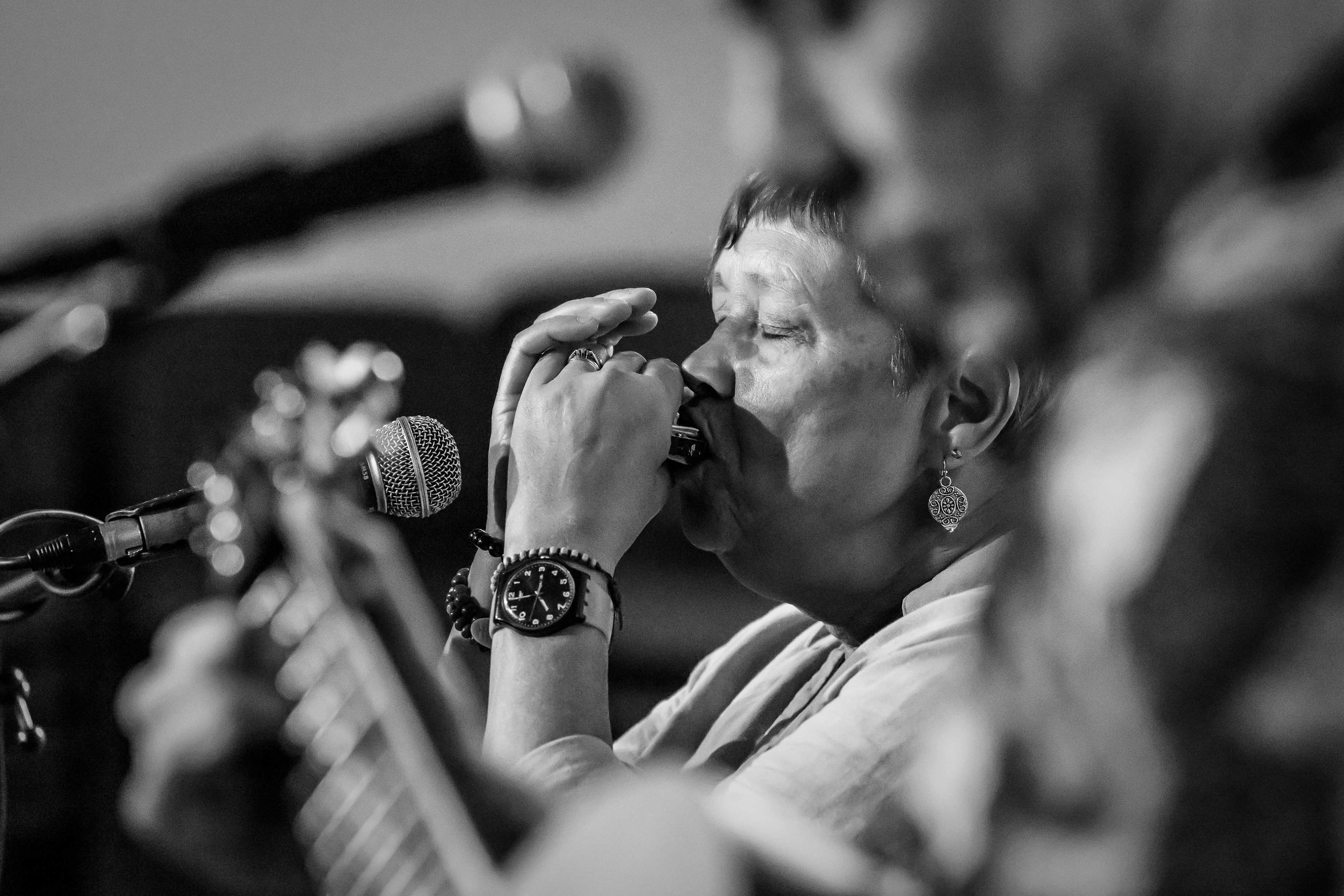 For me as a photographer, performances like this are a joy to capture. The light in Reeth Memorial Hall is soft and intimate, with just enough glow to catch the emotion in a performer’s face and the detail of an instrument in motion. There’s something wonderful about photographing live music — that split second where the music and expression align perfectly. Rag Mama Rag’s set was full of those moments: the concentration in a chord change, the rhythm of Deborah’s hands, the way Ashley leans into the microphone mid-verse.