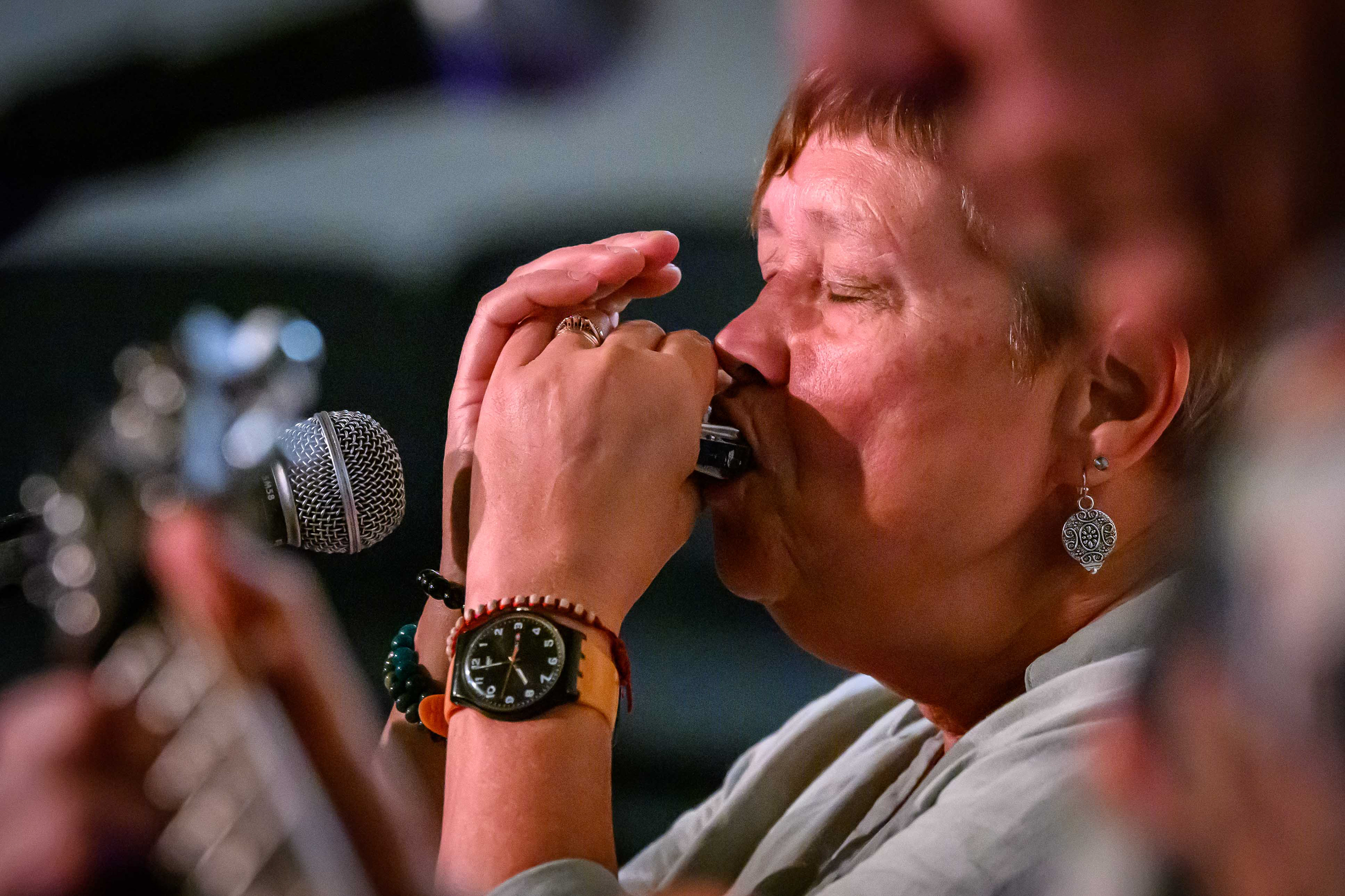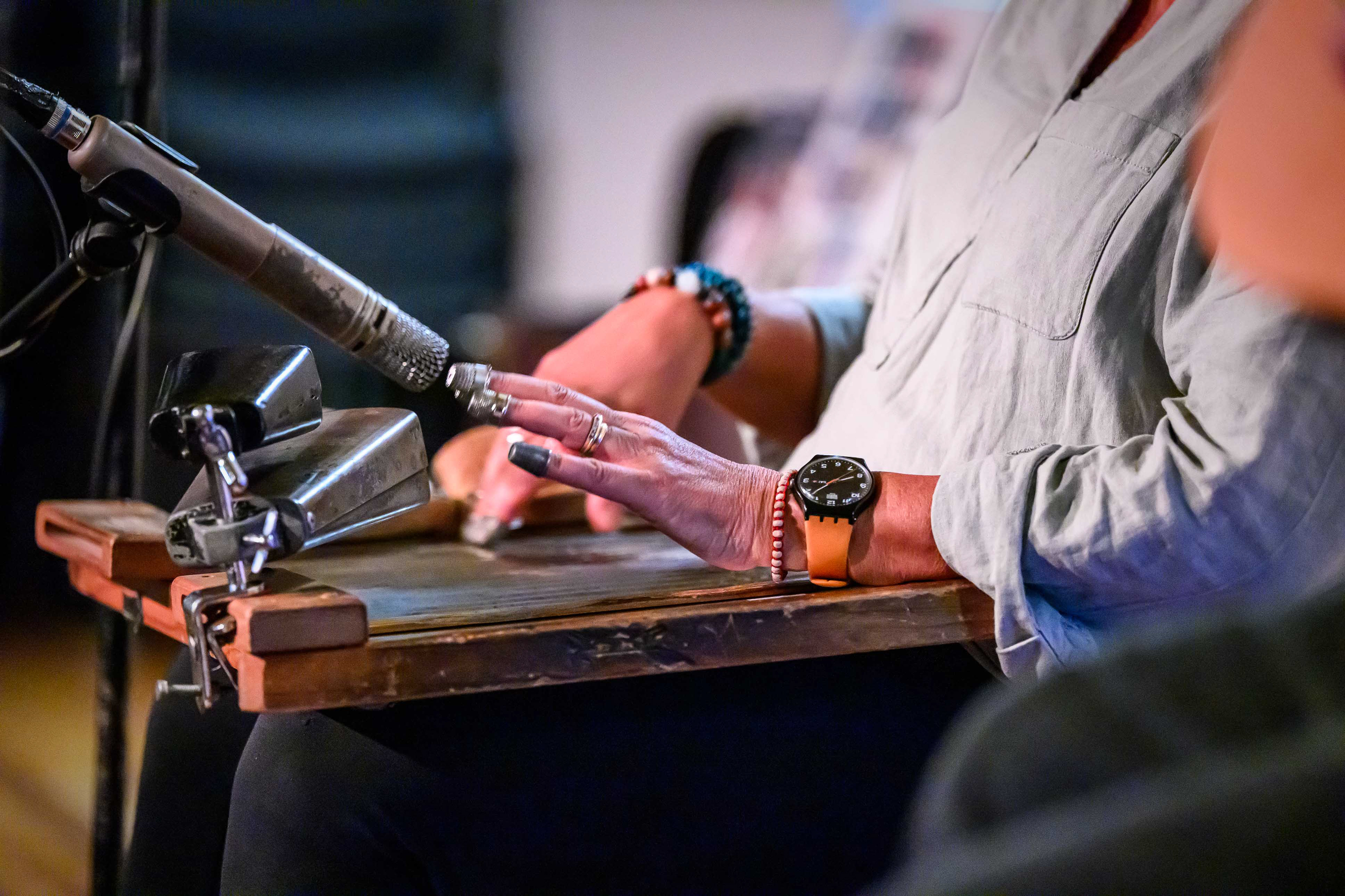 Throughout the evening, Ashley’s intricate fingerpicking on guitar and resonator combined with Deborah’s driving percussion, washboard, and harmonica to create a rich, textured sound that filled the hall. Every piece seemed to tell a story — of dusty roads, riverboats, or backstreet bars where music was both a celebration and an escape. Their chemistry on stage is effortless, honed by years of performing together and a shared love of the traditions they keep alive.