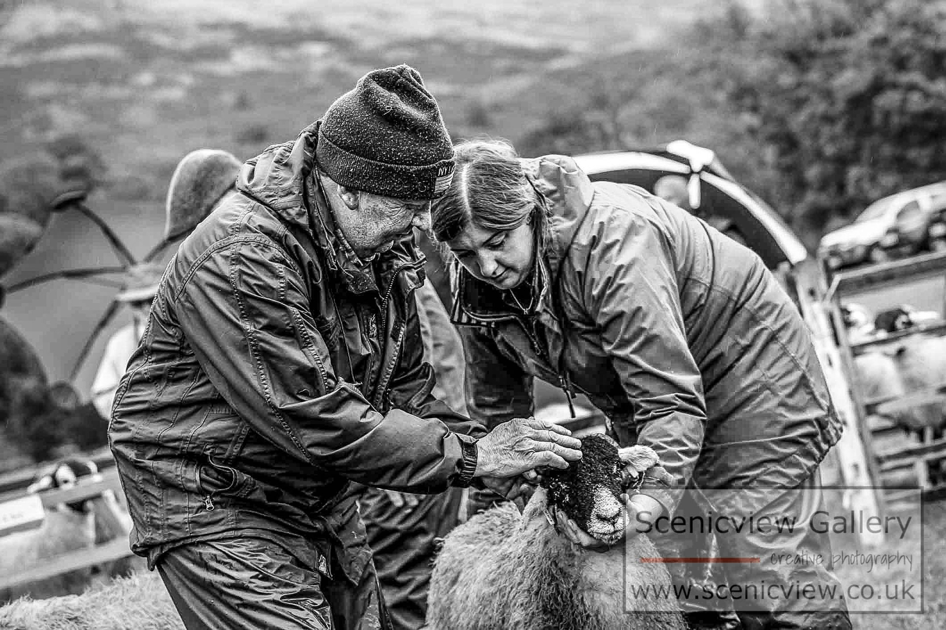 Shot in black and white, the photographs strip away distraction and place the emphasis on character—of both the sheep and the people who bring them. In monochrome, the grit of farming life becomes starkly visible: the weather-beaten faces, the intensity of concentration, and the timeless dialogue between farmer and land. Rain glistening on jackets, boots sinking into soft ground, and the stoic postures of those gathered ringside all add to the drama of the scene.