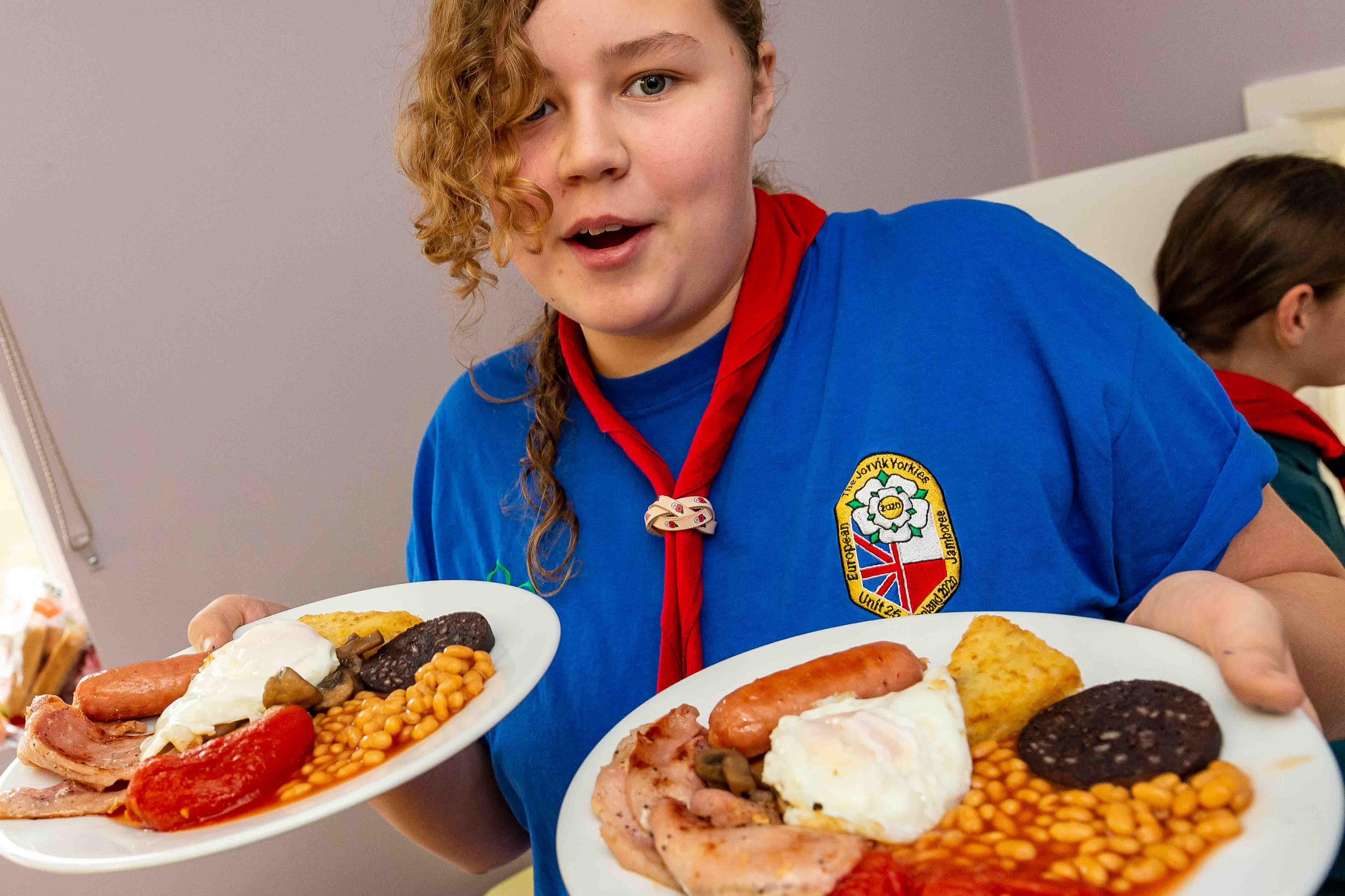 Swaledale Scout Group held their now annual Big Breakfast at Reeth Memorial Hall, this year raising funds for the Two Ridings Flood Appeal Fund. Attendance was up again this year as news spread of the great Full Yorkshire breakfast on offer!