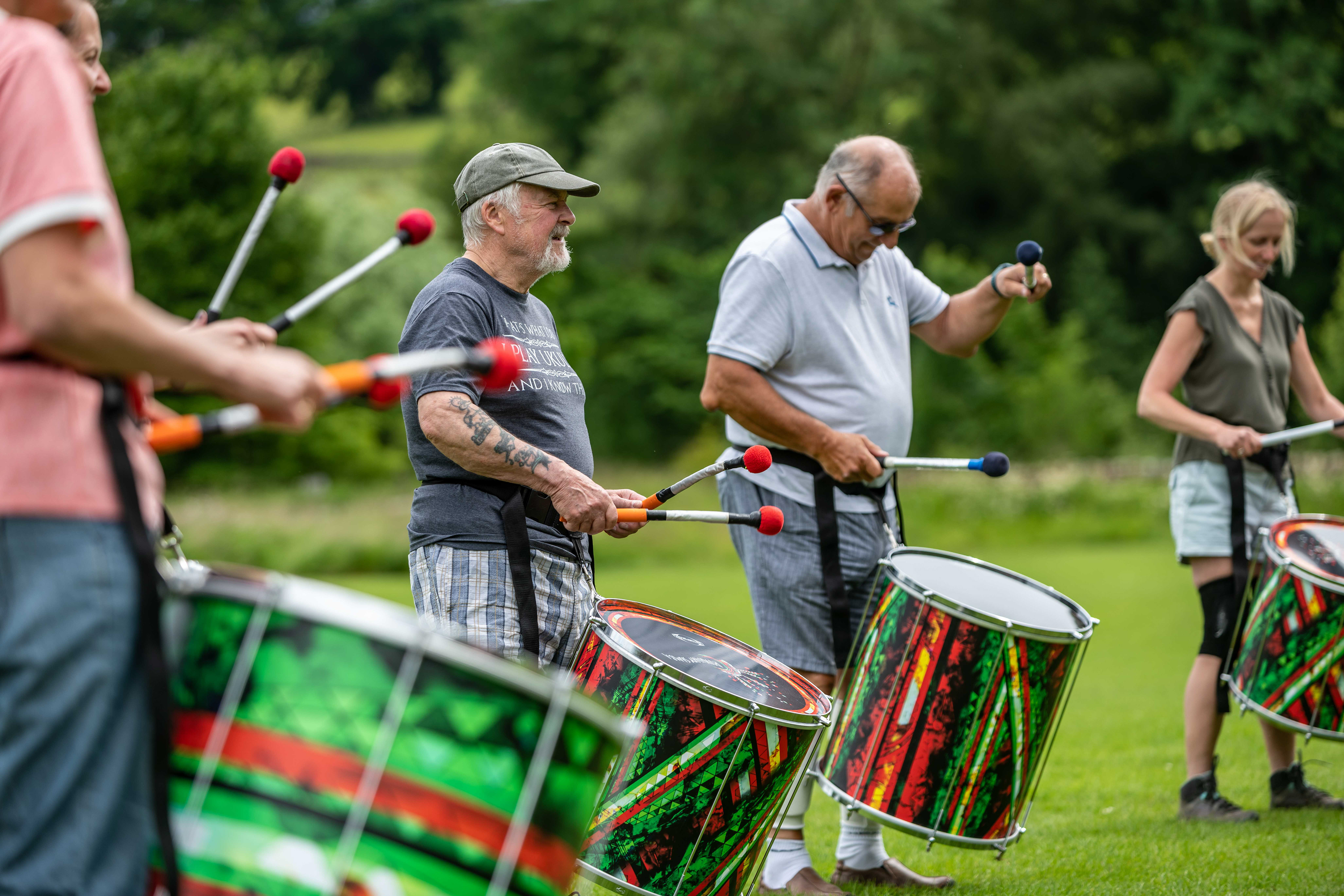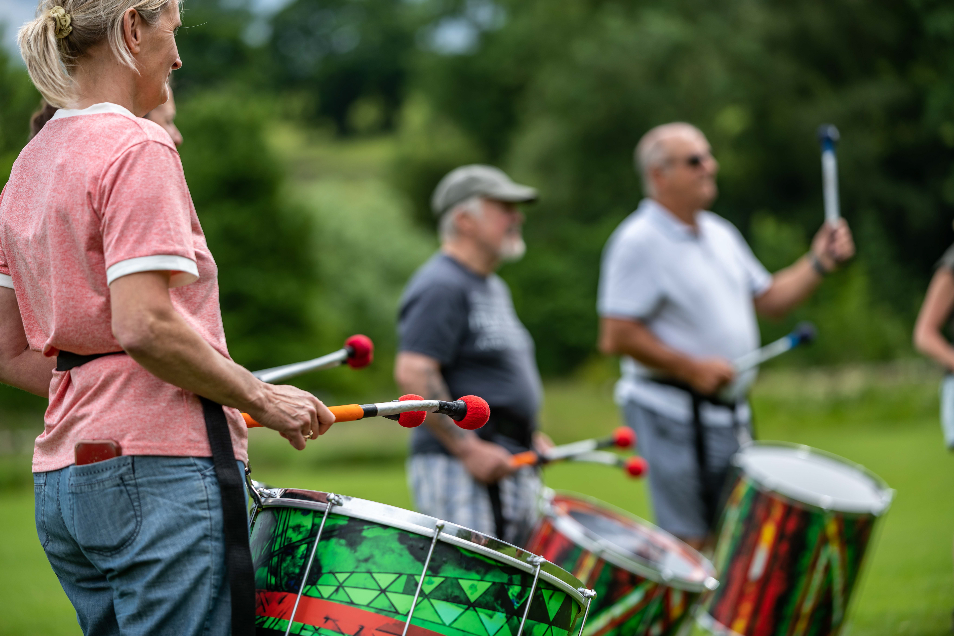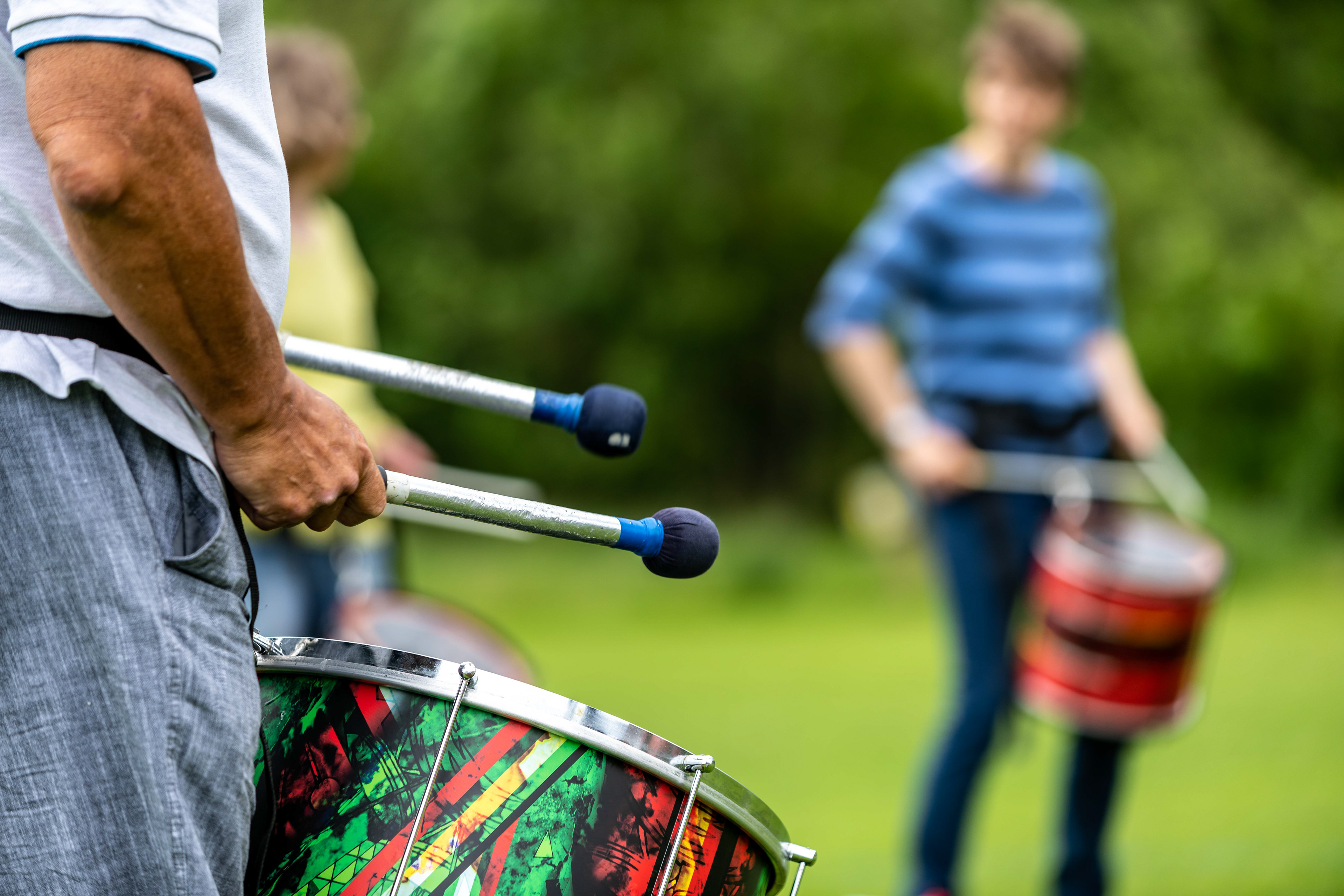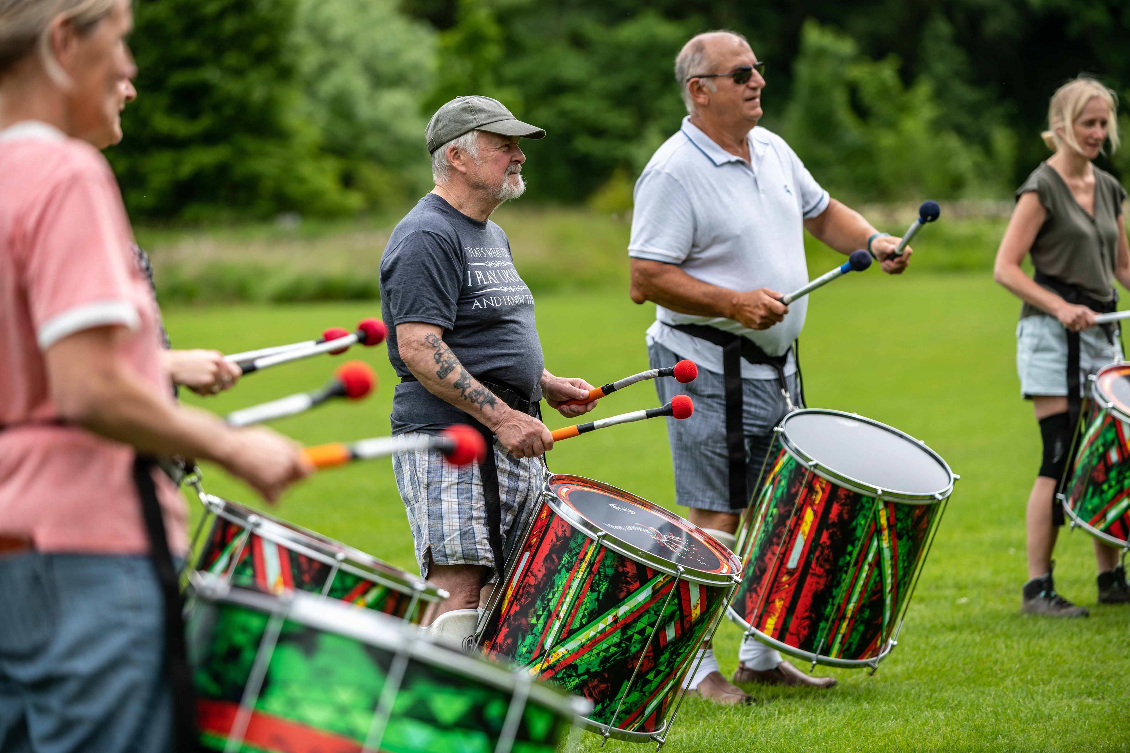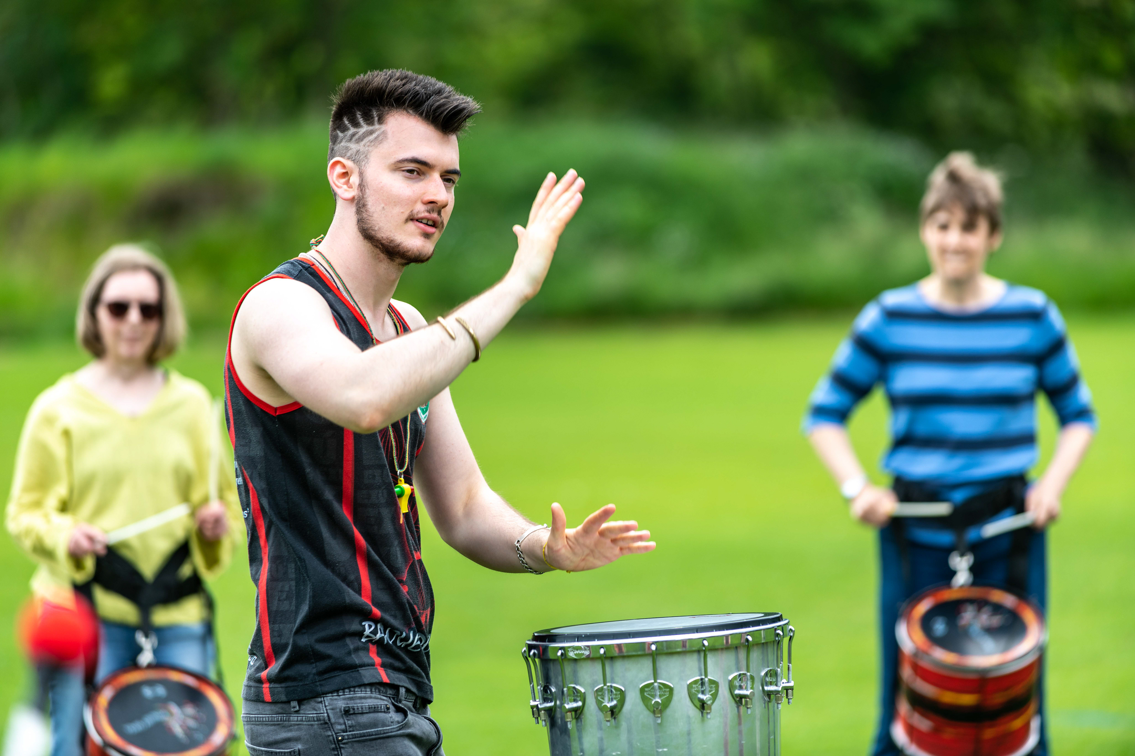 Following on from their popular appearance at Swaledale Festival in May, Jack Drum Arts ran a Samba drumming workshop in Reeth today.