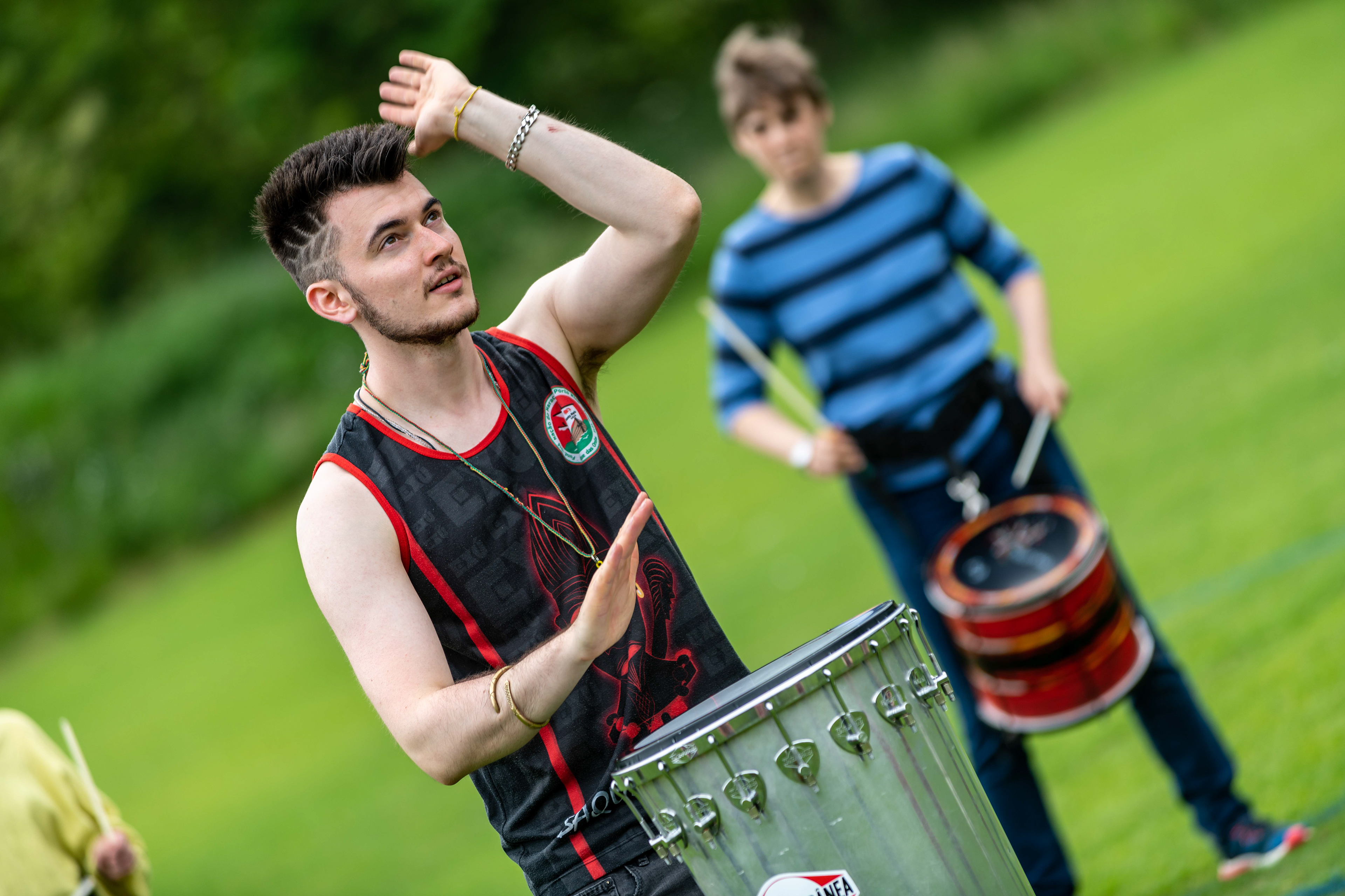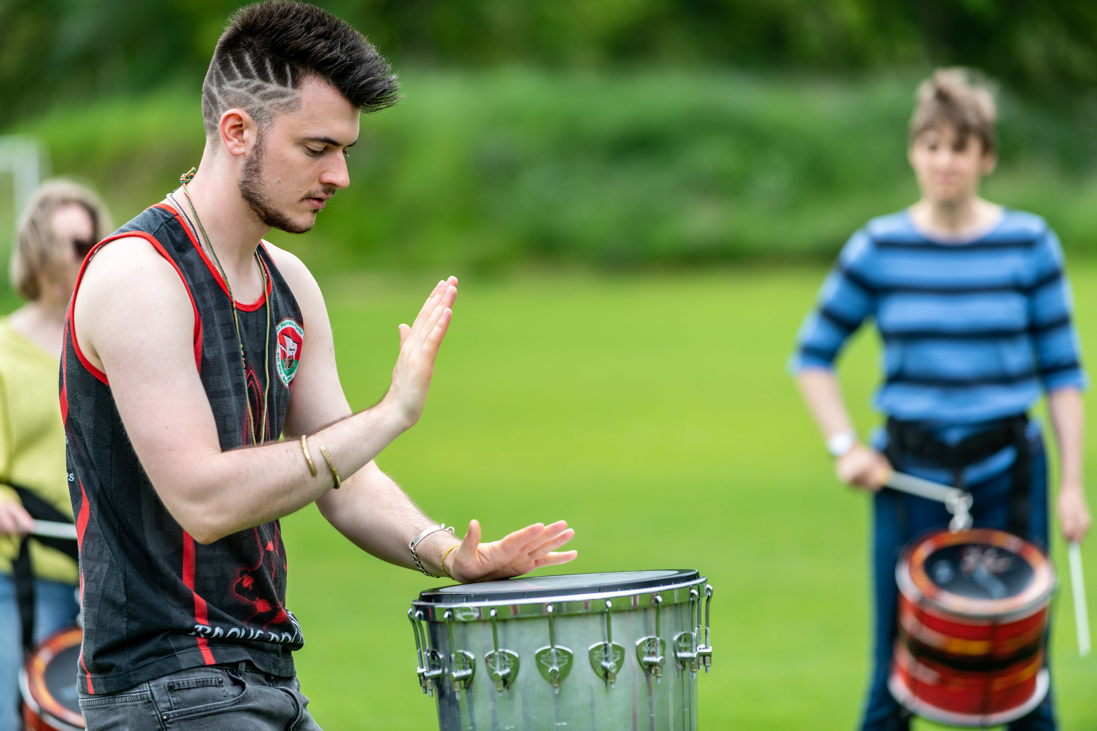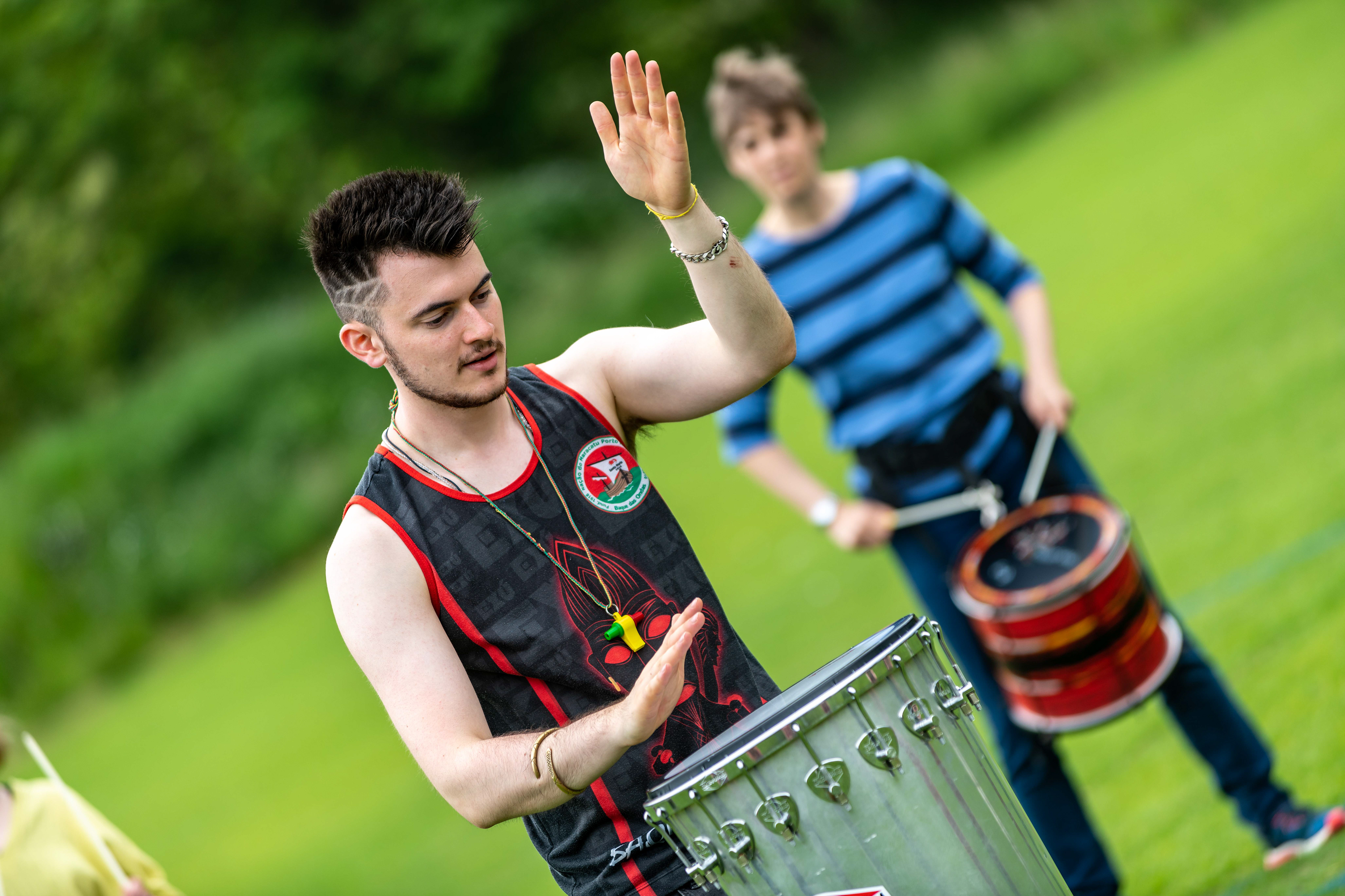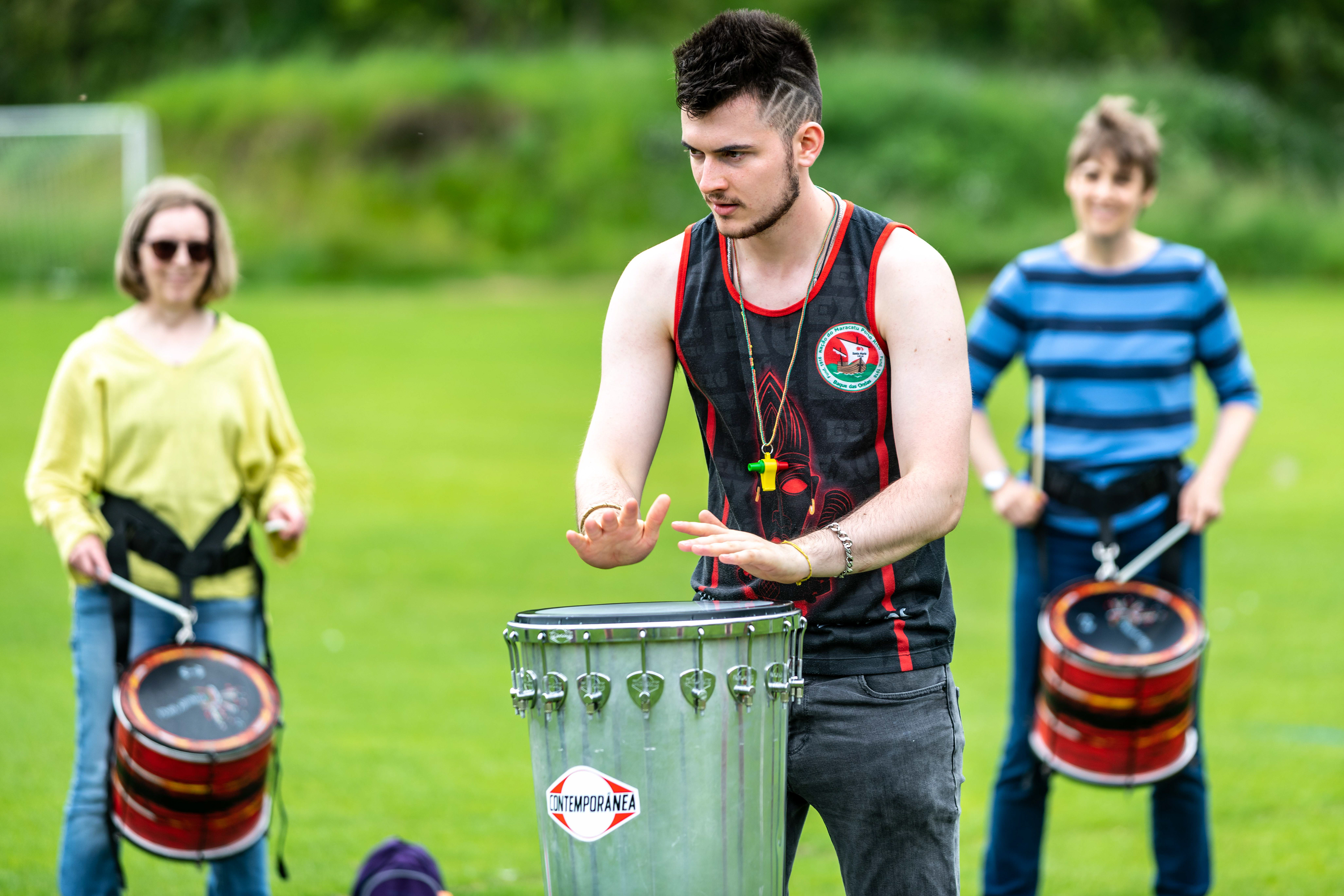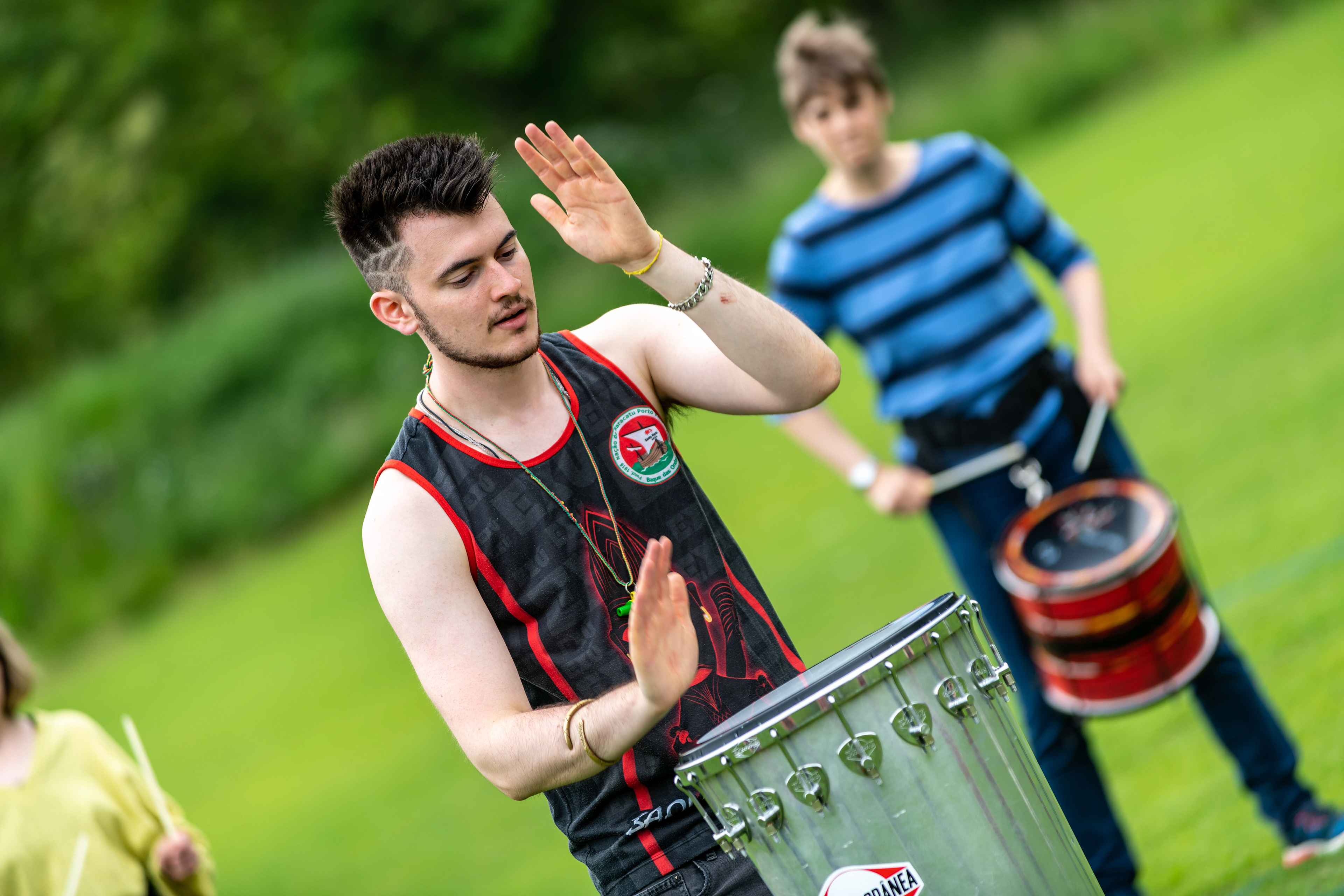 Following on from their popular appearance at Swaledale Festival in May, Jack Drum Arts ran a Samba drumming workshop in Reeth today.