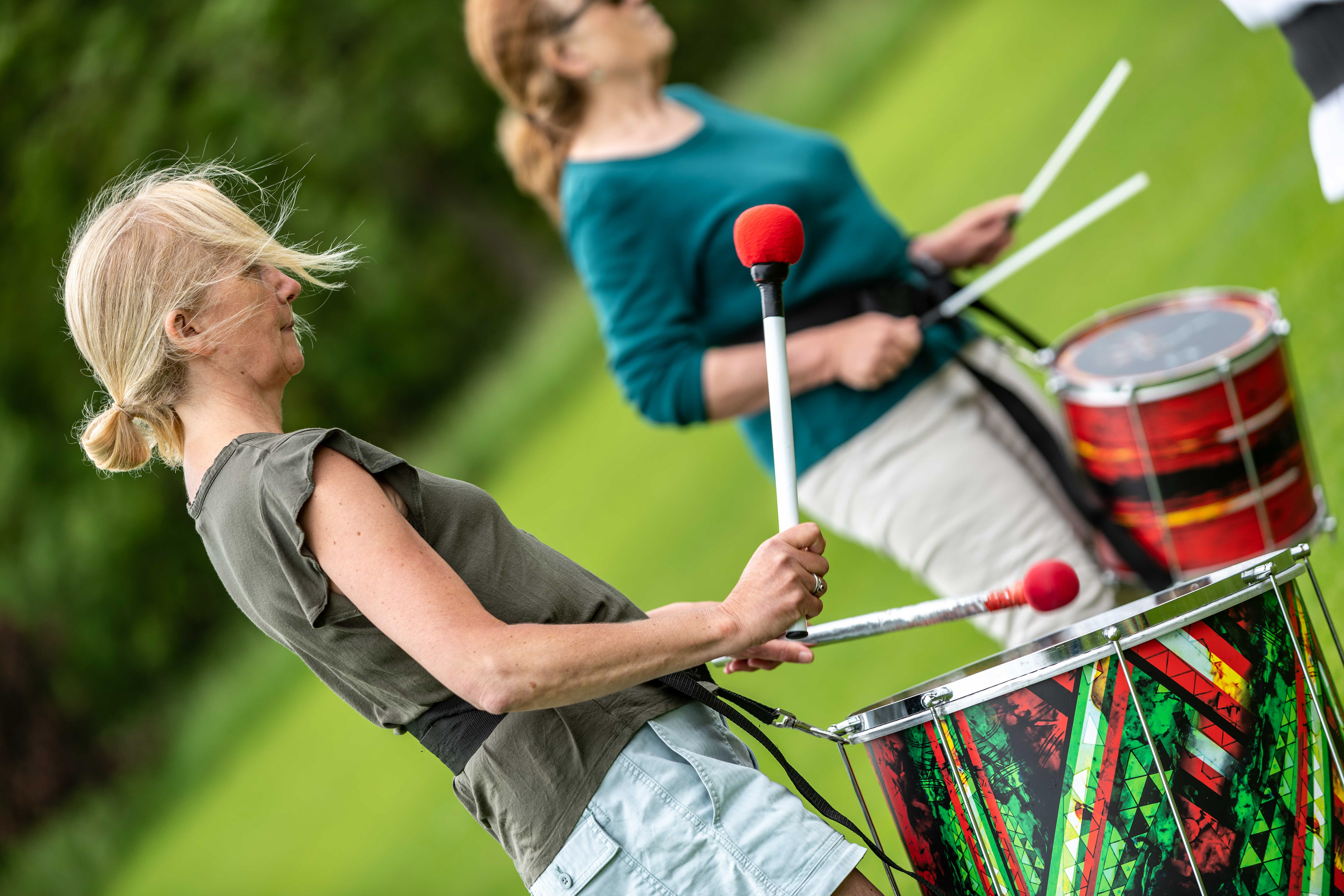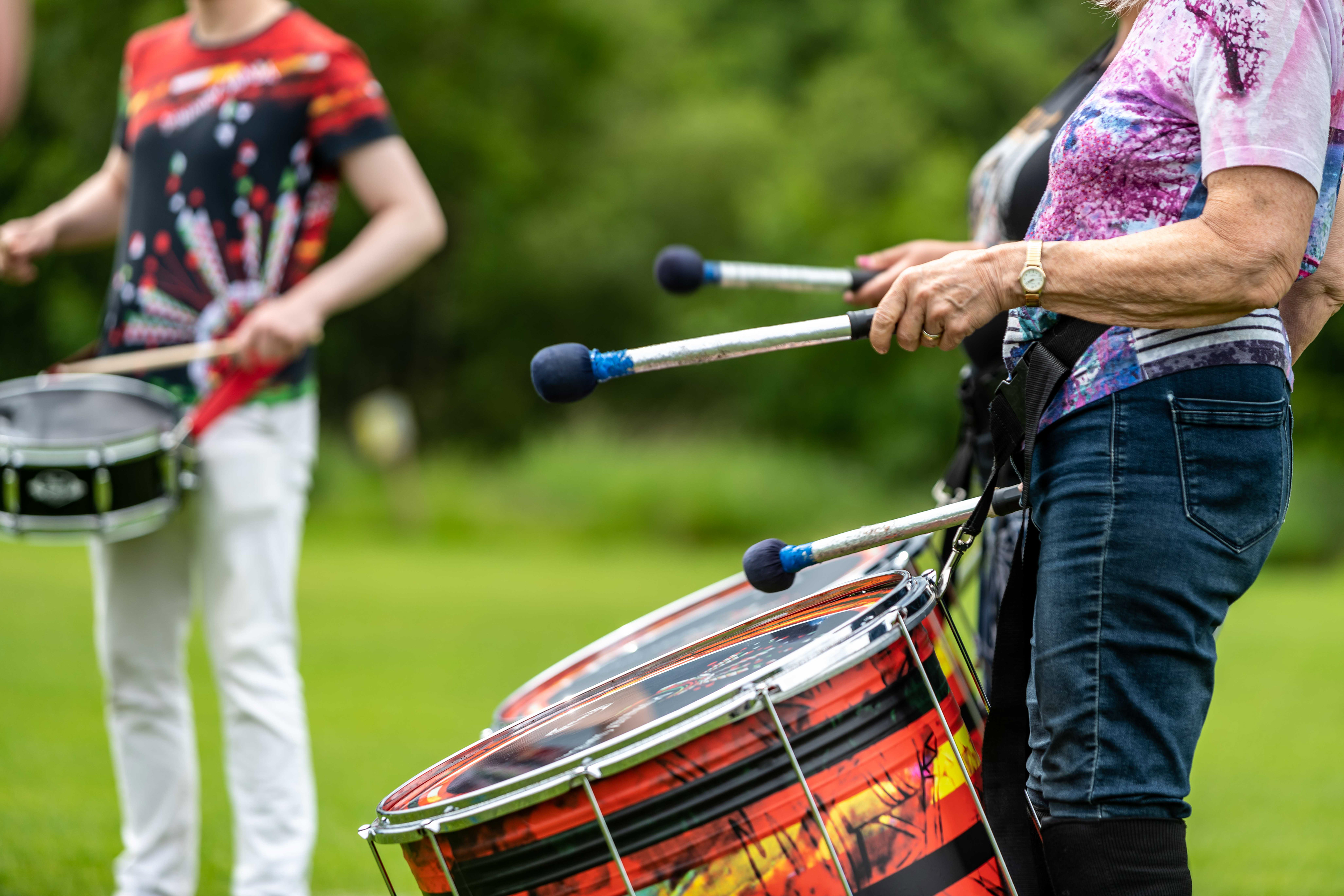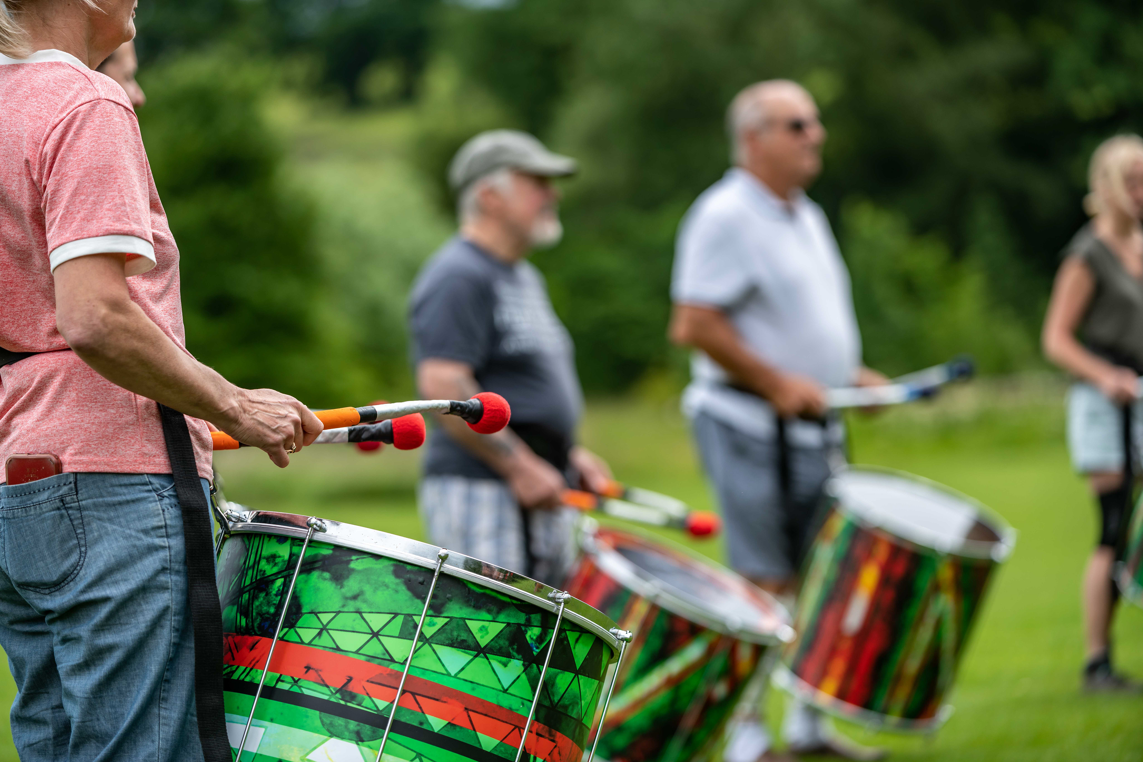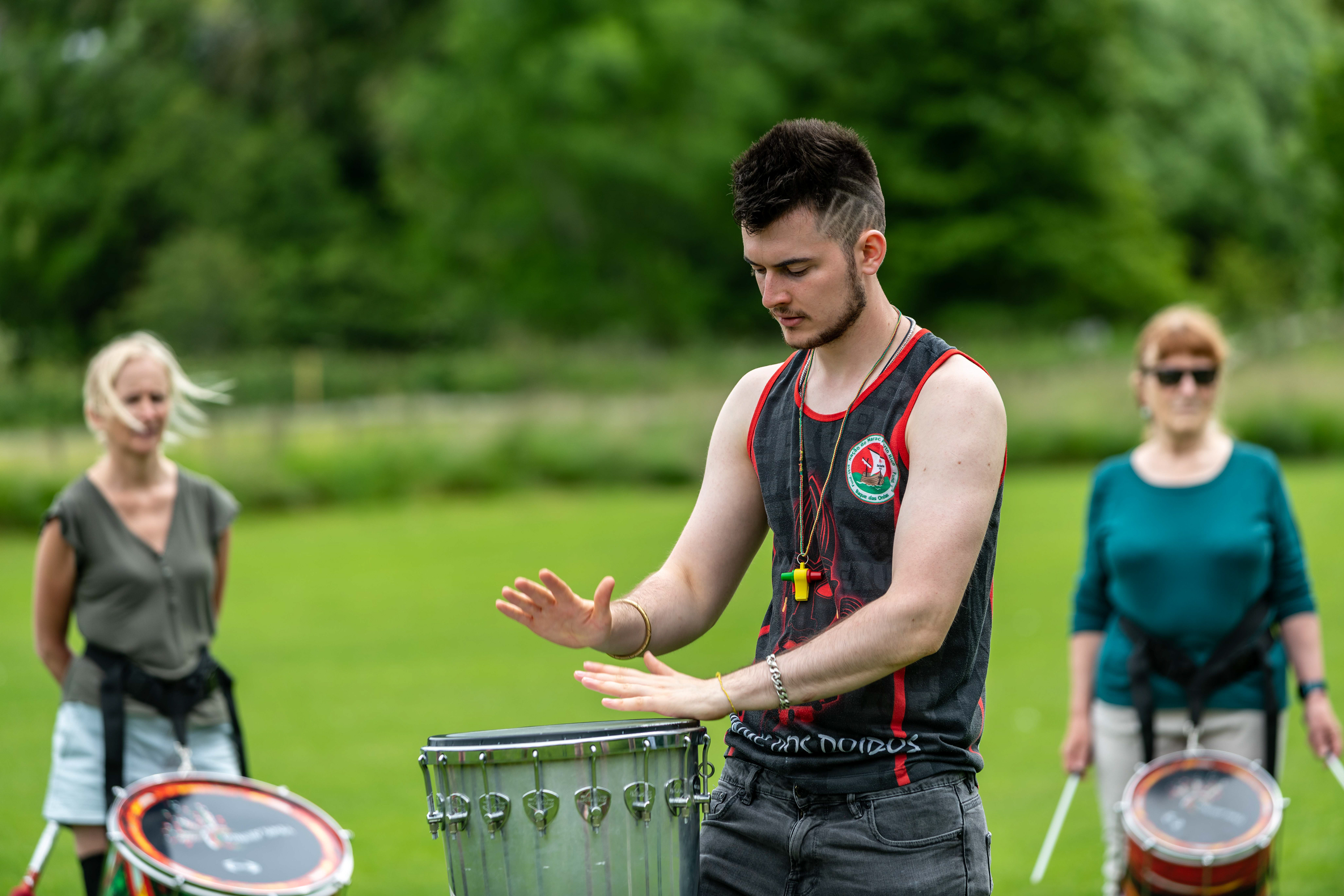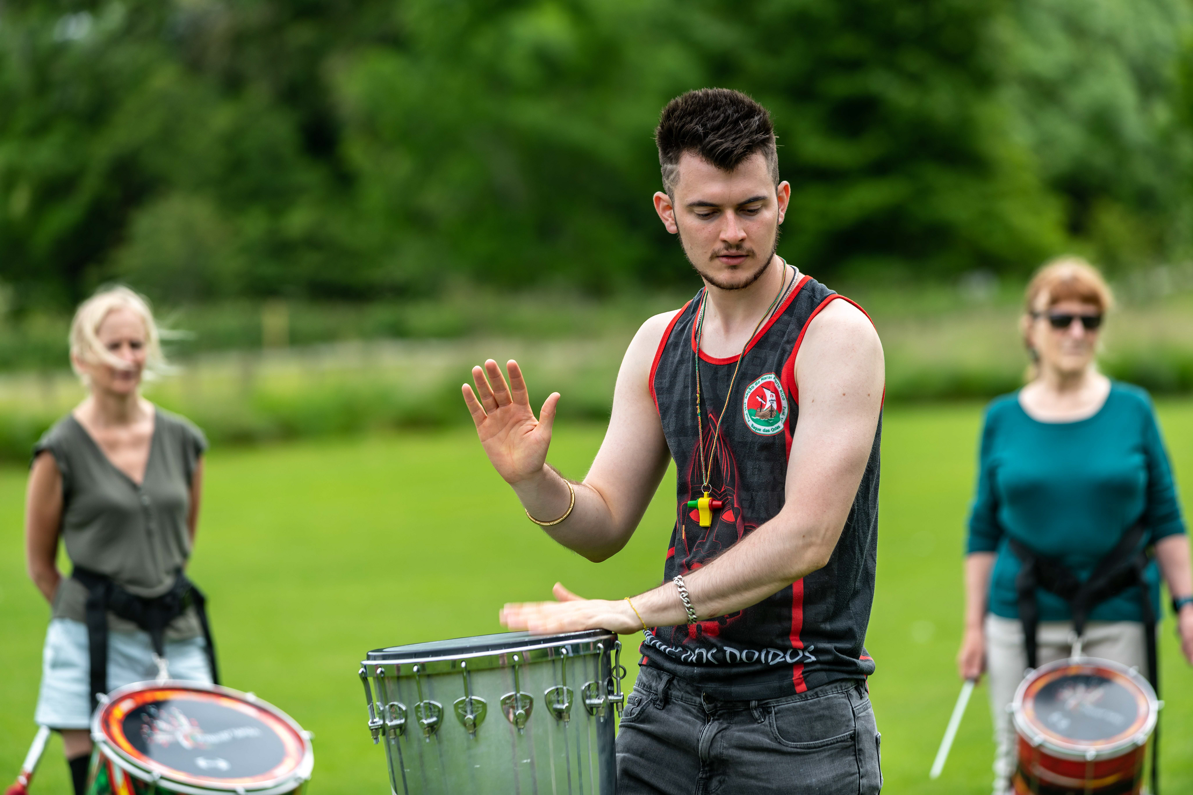 Following on from their popular appearance at Swaledale Festival in May, Jack Drum Arts ran a Samba drumming workshop in Reeth today.