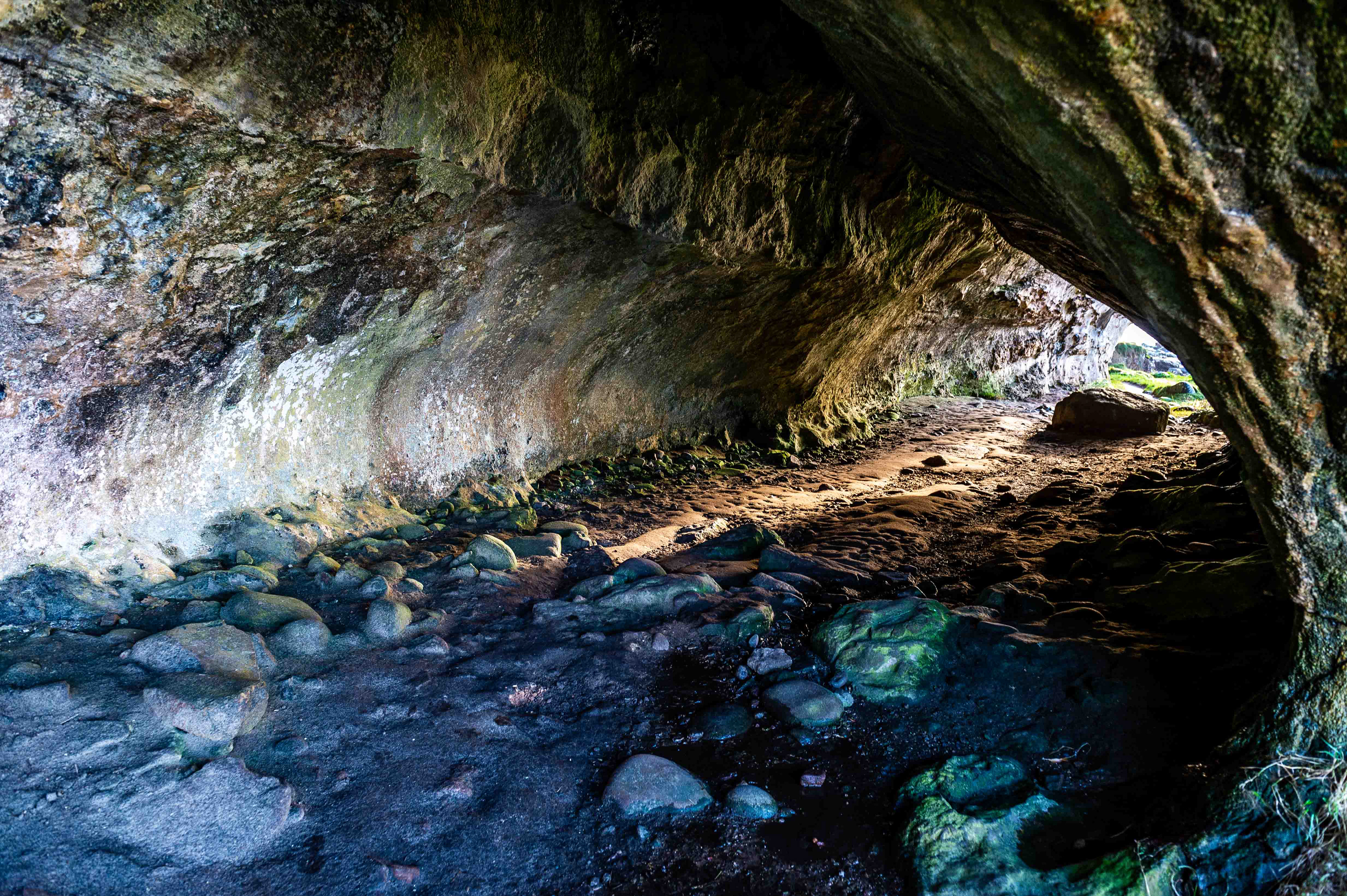 Kings Caves on the west coast of the Isle of Arran is one of a number of locations claiming to be the place King Robert the Bruce held up and witnessed the infamous spider repeatedly trying to make a web. King Robert the Bruce I was born at Lochmaben Castle in 1274. He was Knight and Overlord of Annandale. In 1306 he was crowned King of Scotland and henceforth tried to free Scotland from the English enemy. After being defeated at a battle, Bruce escaped and found a hideout in a cave. Hiding in a cave for three months, Bruce was at the lowest point of his life. He thought about leaving the country and never coming back. While waiting, he watched a spider building a web in the cave's entrance. The spider fell down time after time, but finally he succeeded with his web. So Bruce decided also to retry his fight and told his men: "If at first you don't succeed, try try and try again".