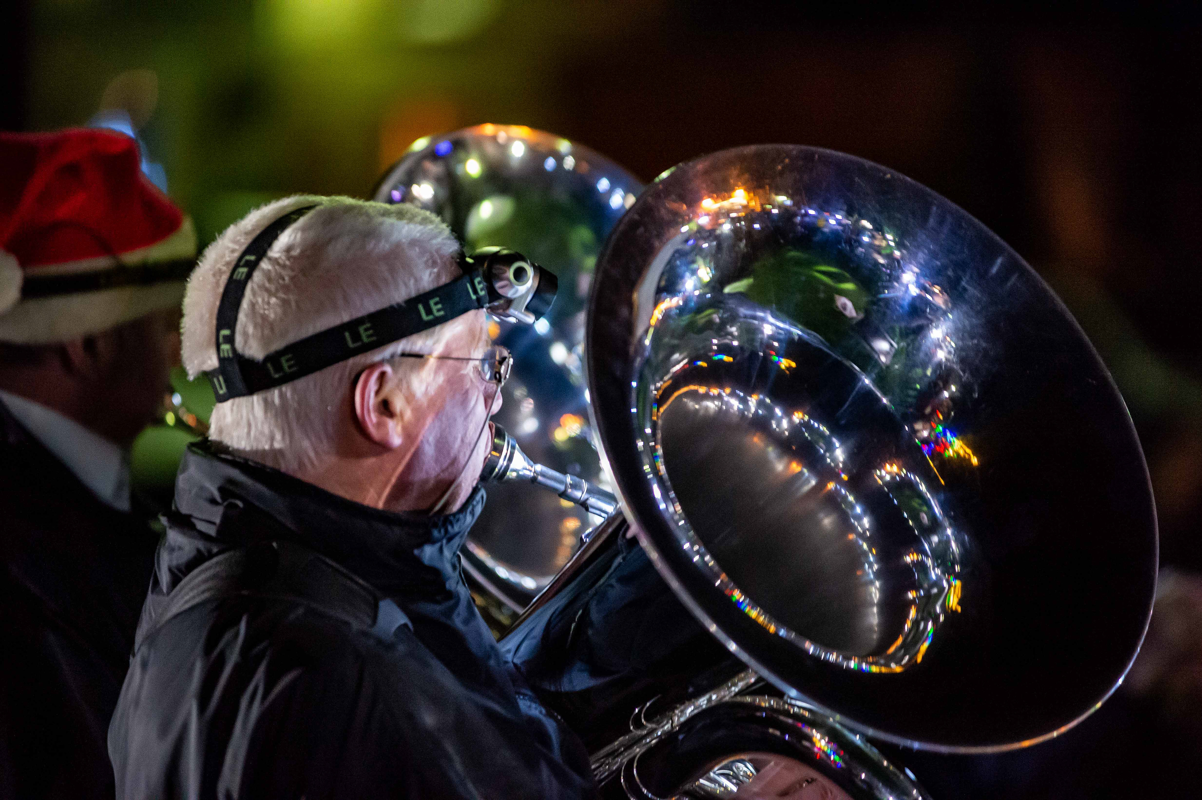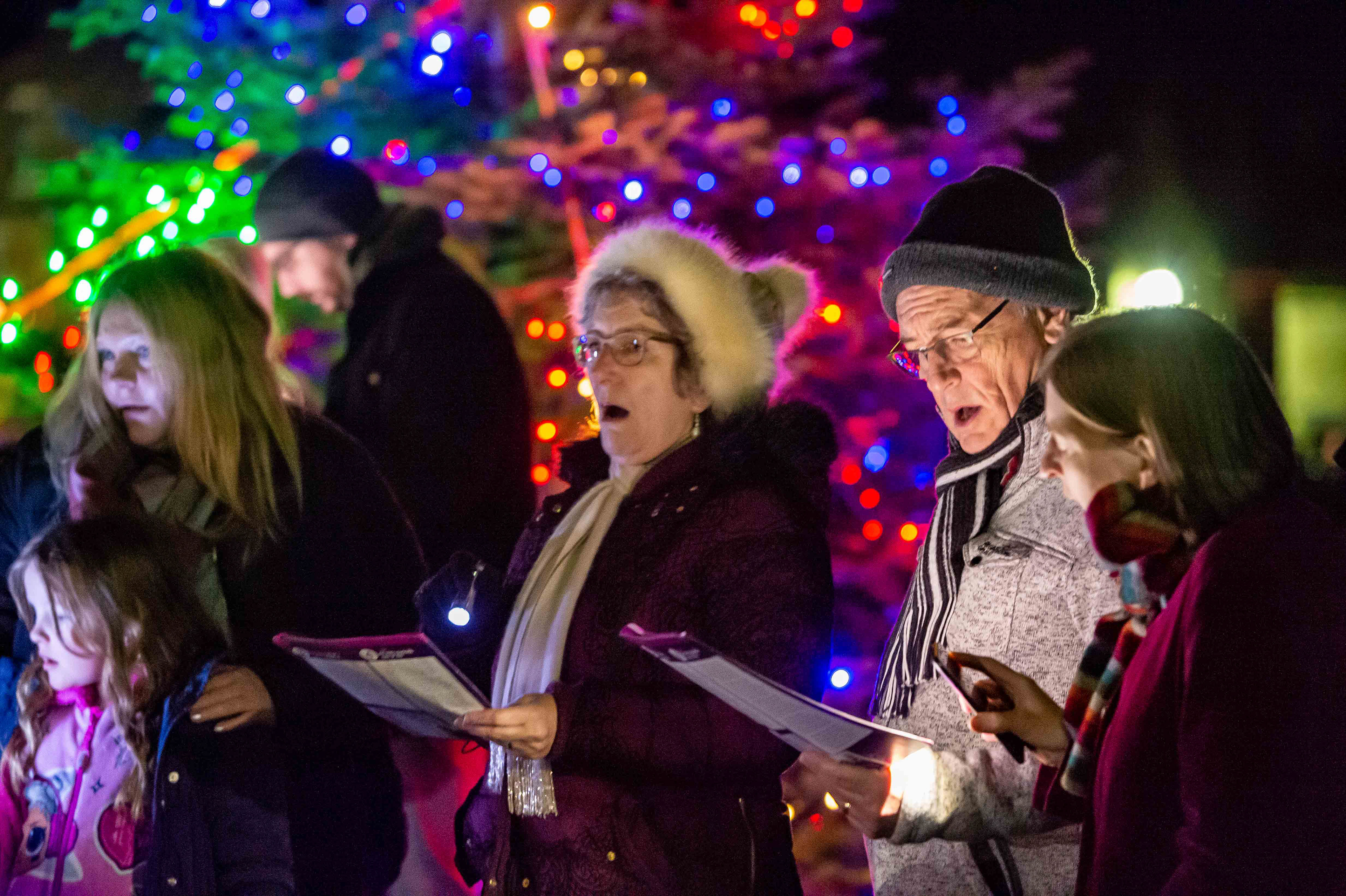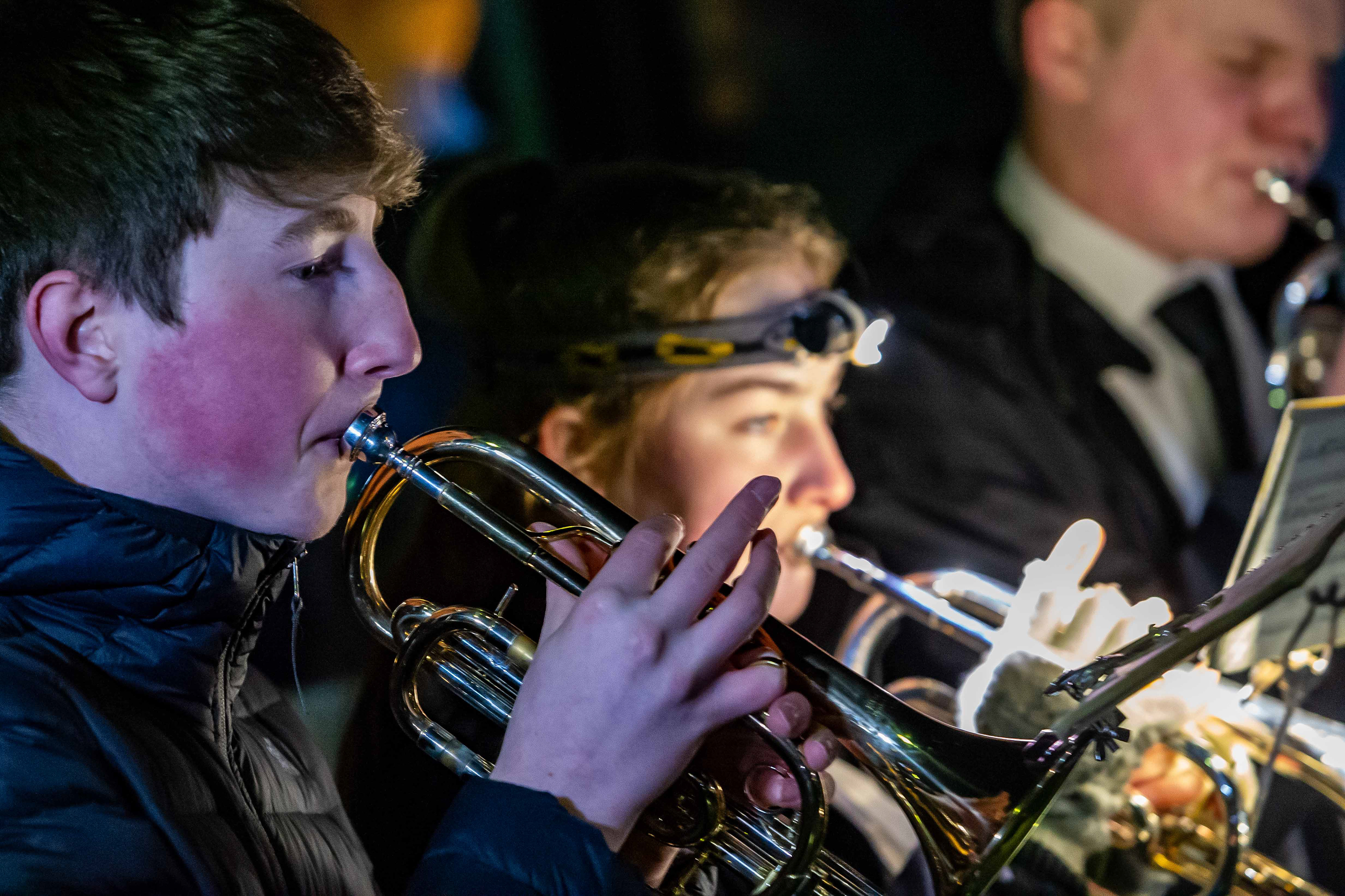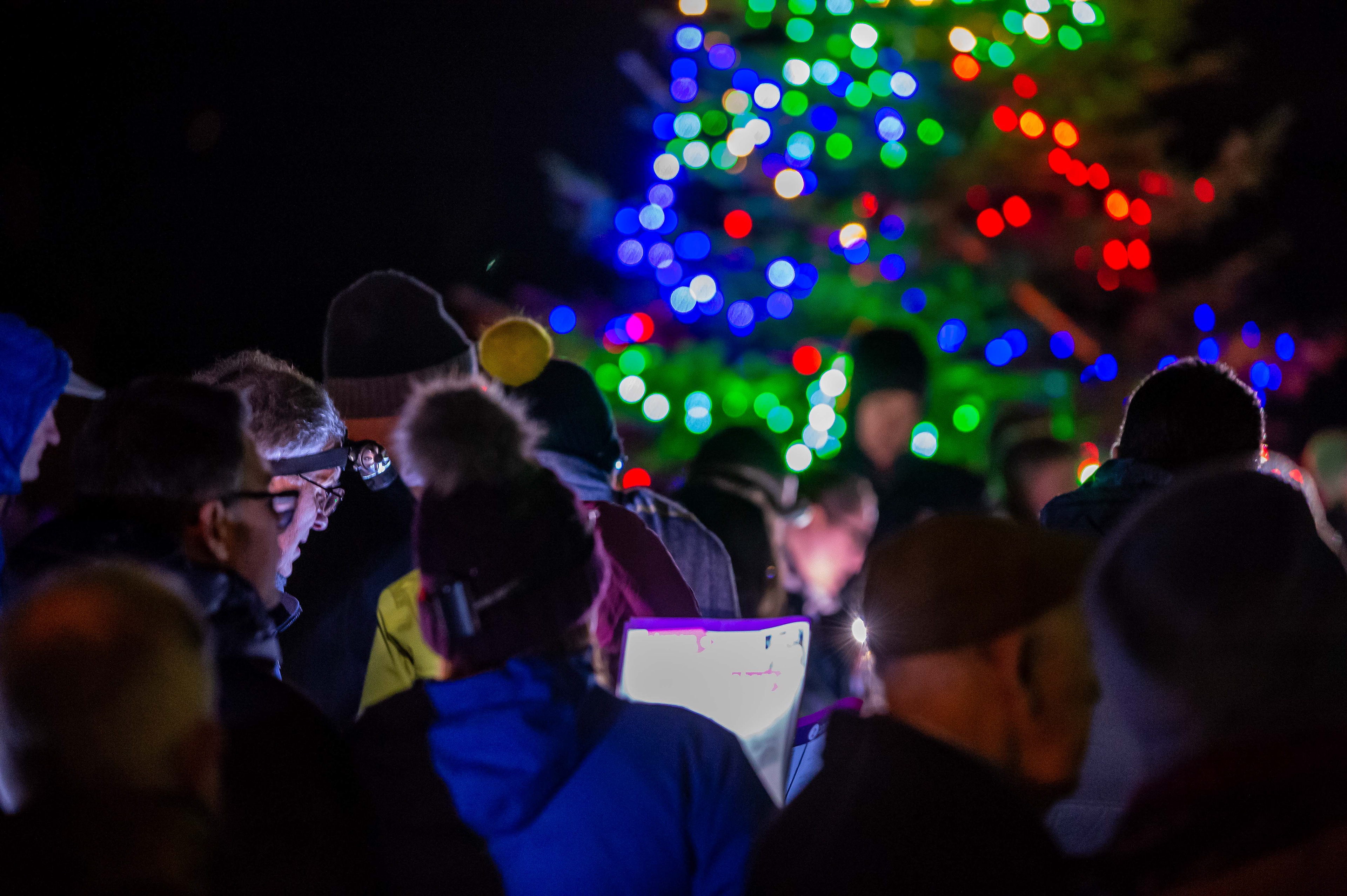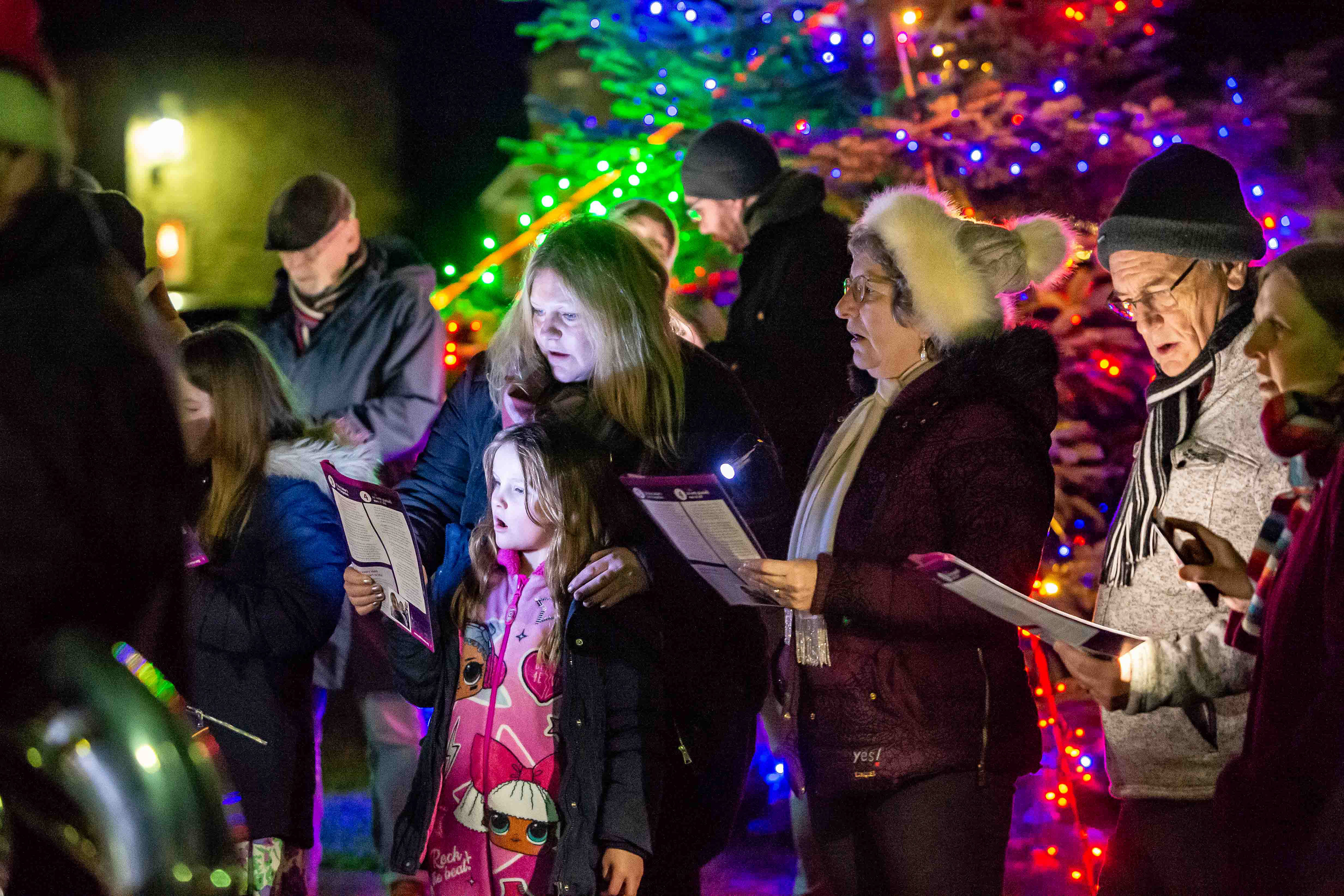 Reeth village gets into the festive spirit with Christmas carols around the tree accompanied by Reeth Brass Band.