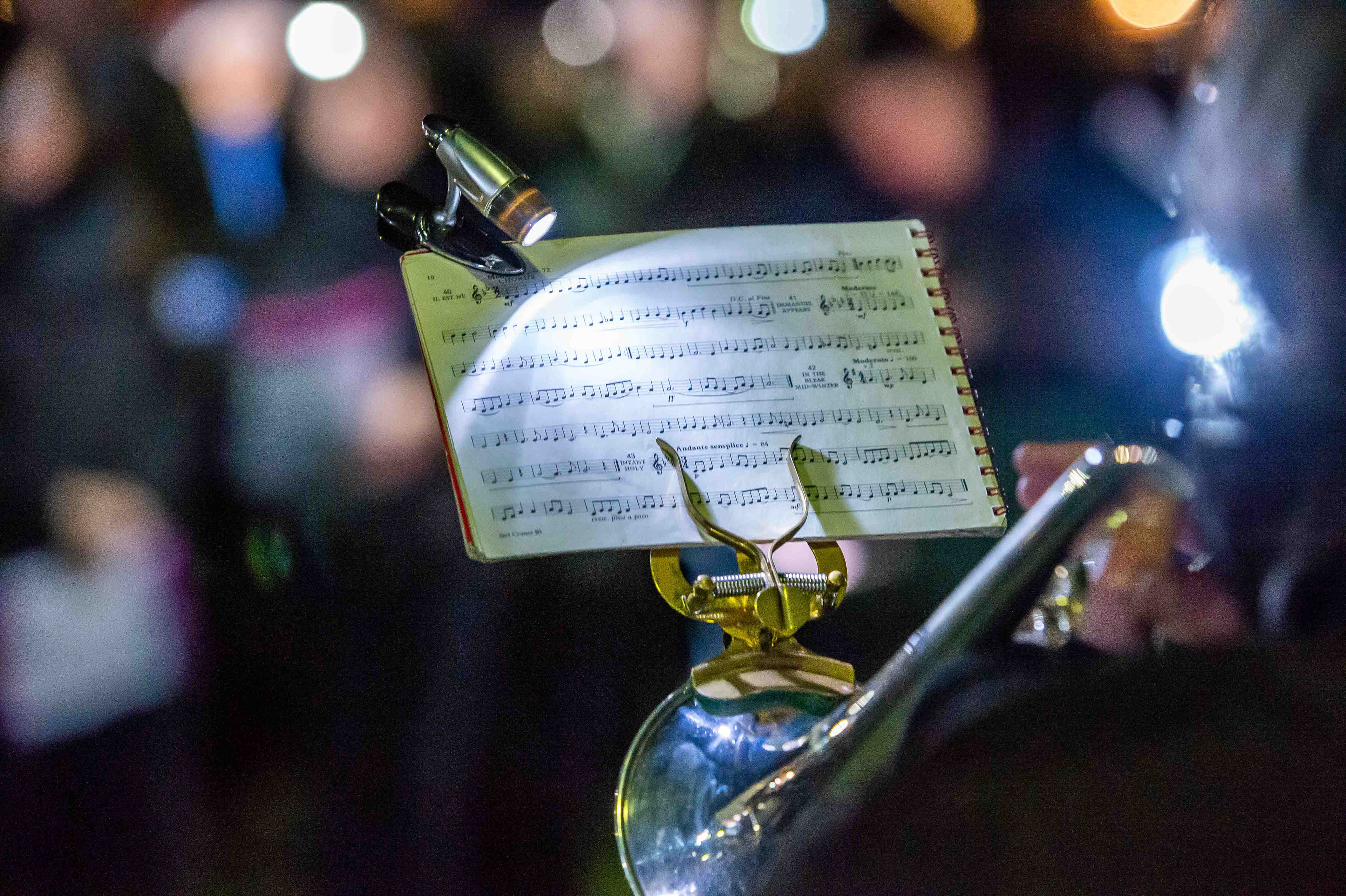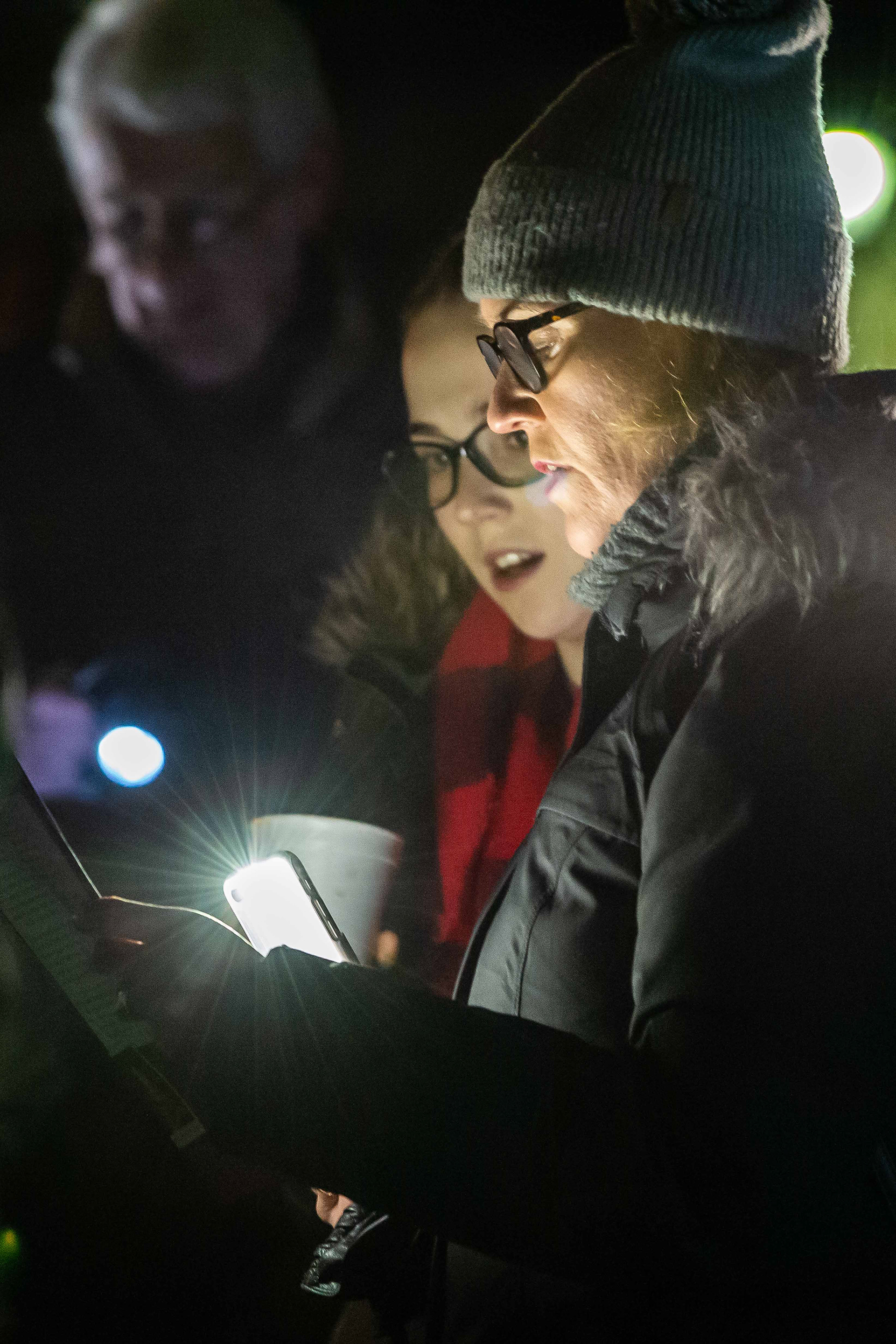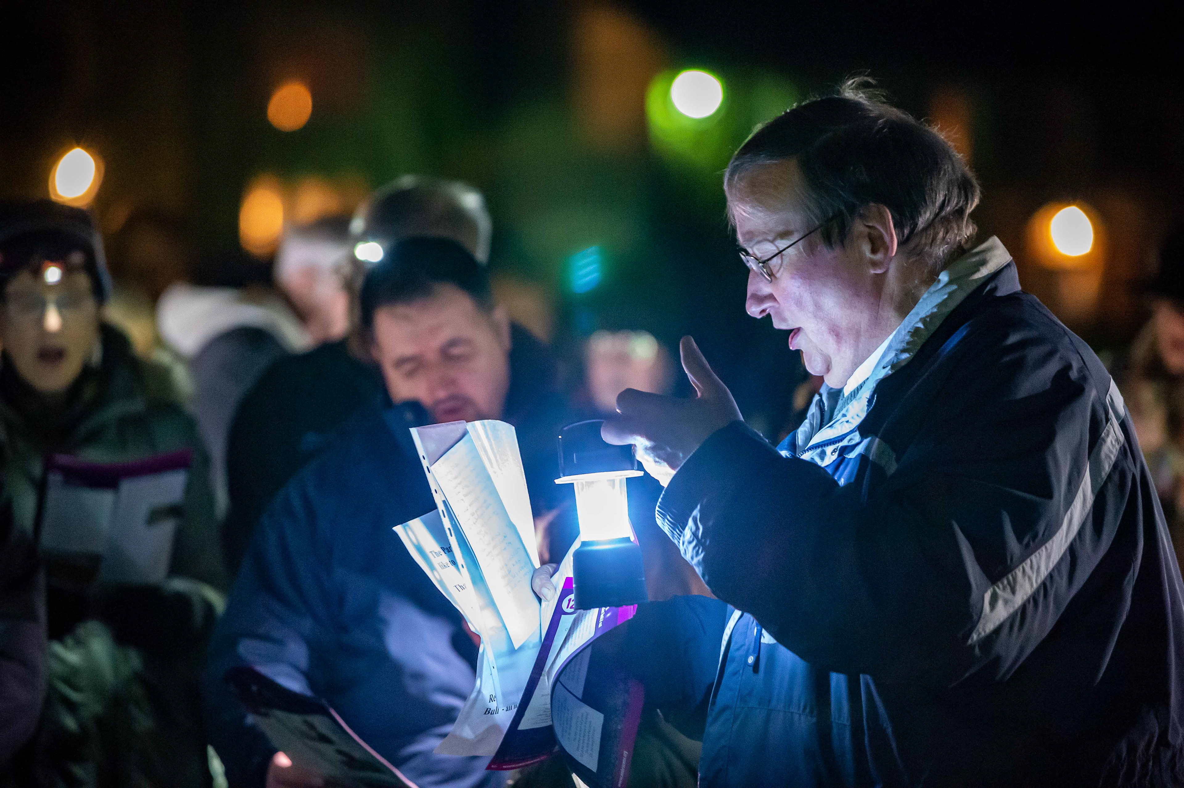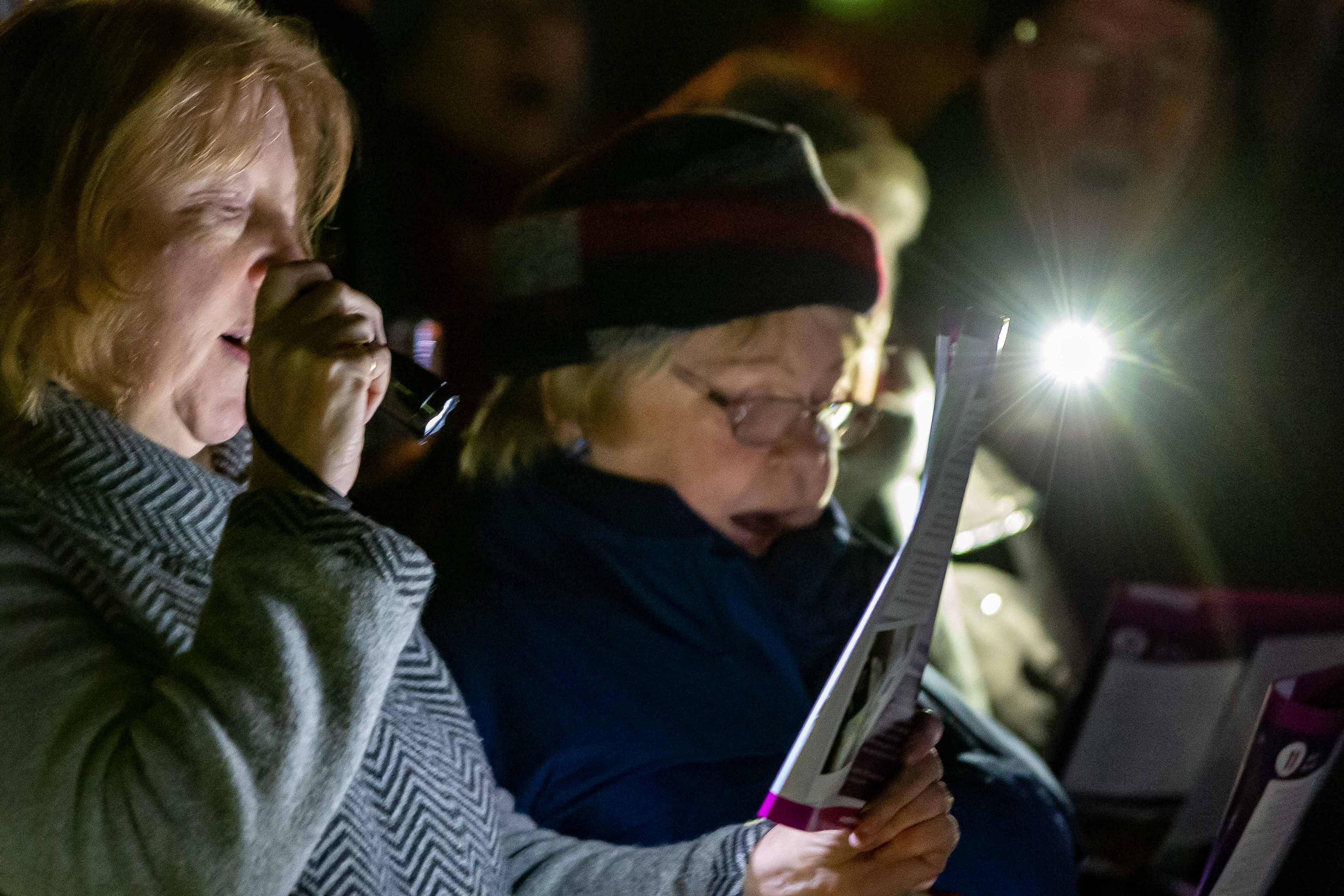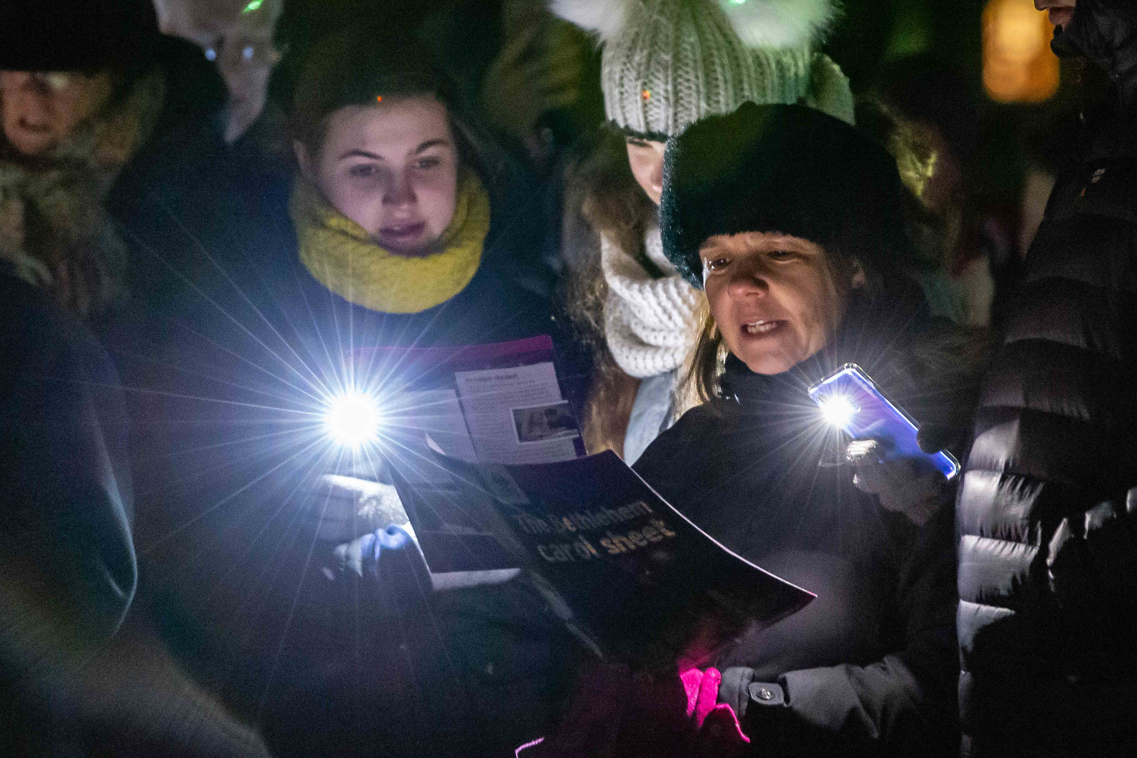 Reeth village gets into the festive spirit with Christmas carols around the tree accompanied by Reeth Brass Band.