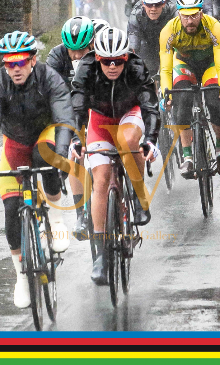 Yorkshire hosted the UCI World Championships in September 2019 with the Elite Men’s road race due to cover much of the route of the 2014 Tour de France stage one that came over Buttertubs and down Swaledale and back over Grinton Moor. We had planned for weeks to position ourselves on Grinton Moor but these plans were soon scuppered when we had torrential rain overnight forcing the organisers to cut 26km from the route which happened to include the two big climbs. So a quick reorganisation and we sped off to Middleham bridge to capture the very wet and mostly miserable looking riders.