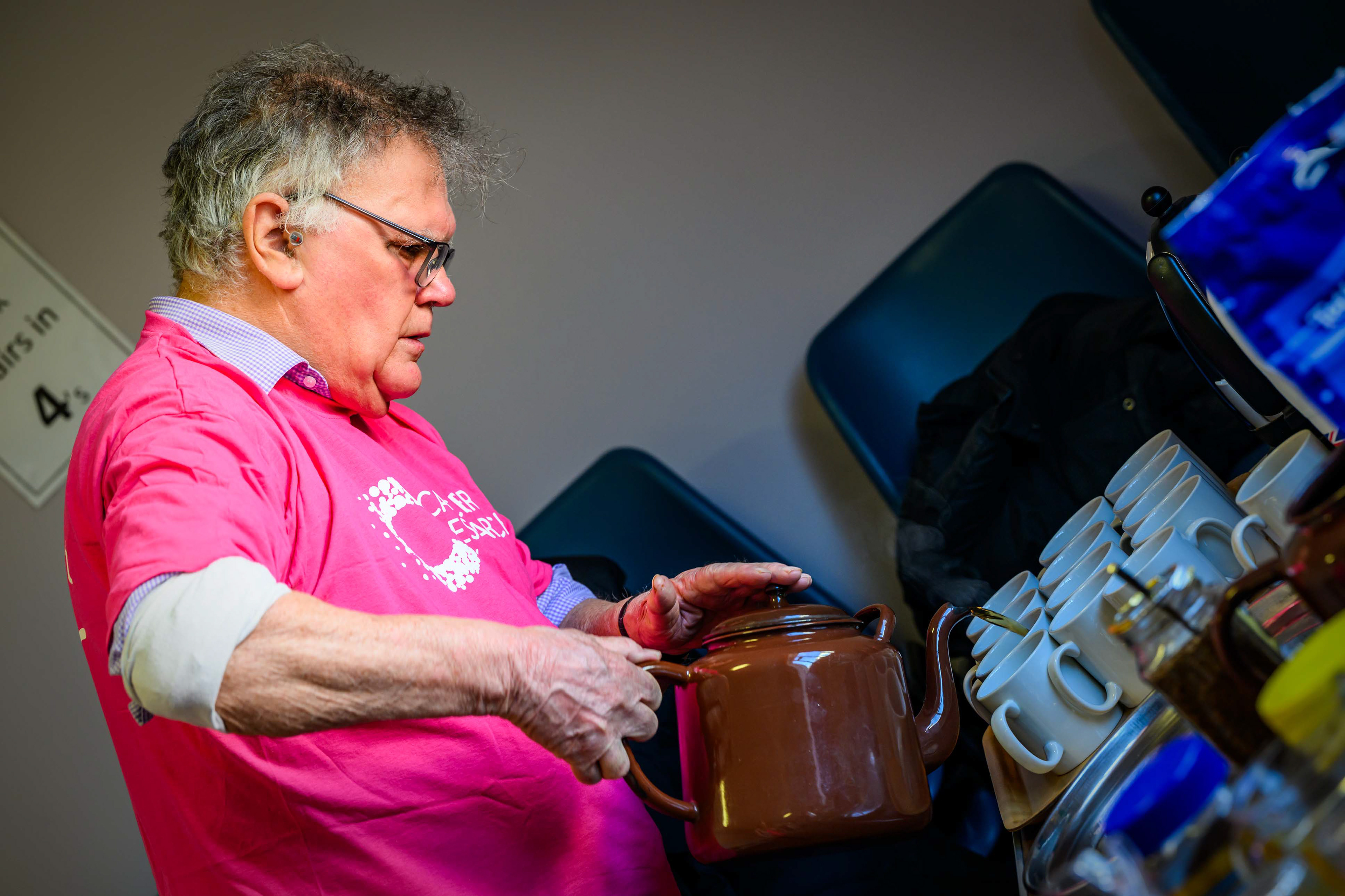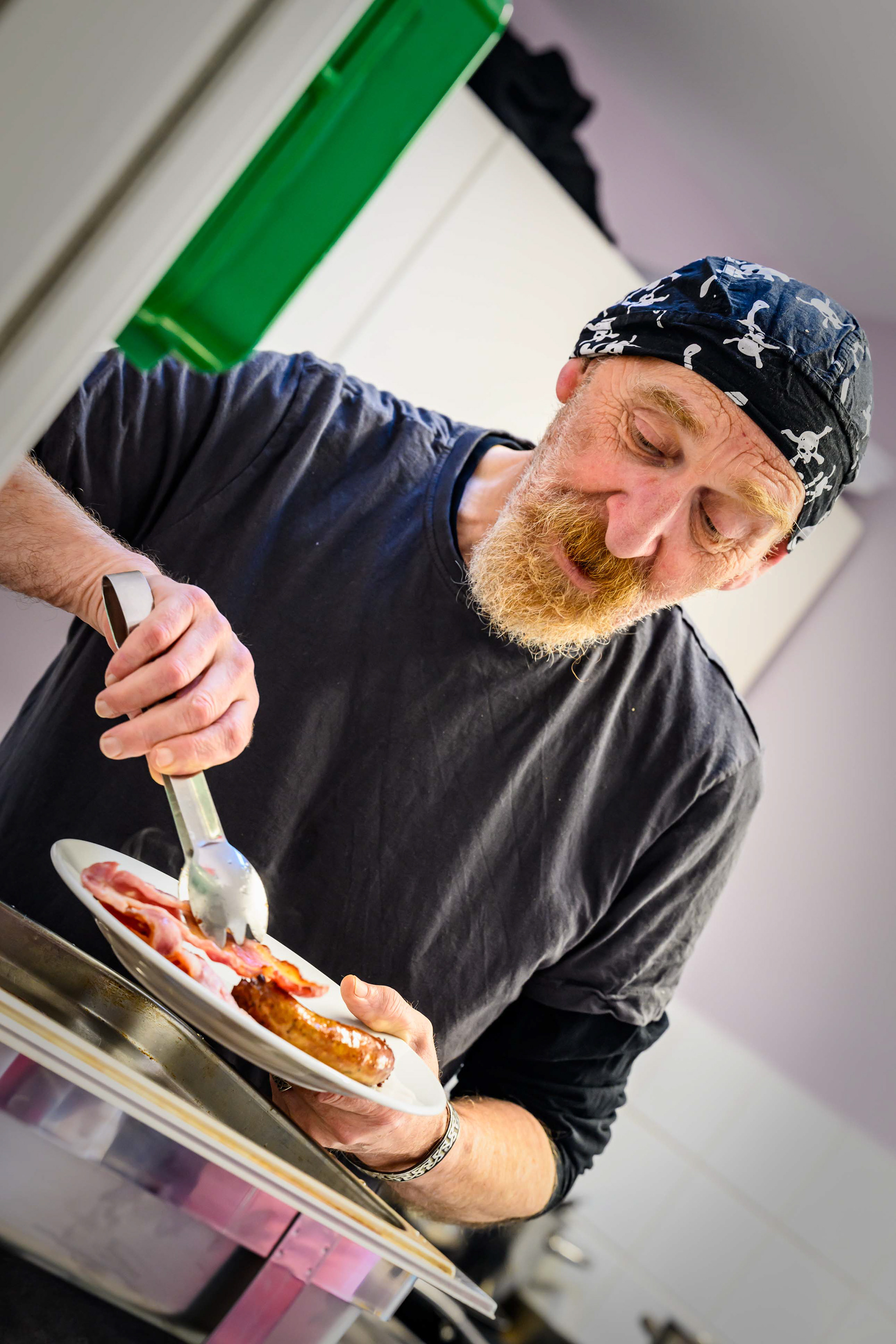 It’s one of those events that really shows the heart of the Dales: people giving up their Saturday morning to cook, serve, and share food for a good cause. The kitchen was a hive of activity, with volunteers in bright pink shirts working tirelessly behind the scenes — frying eggs, pouring tea, and making sure every plate was piled high.