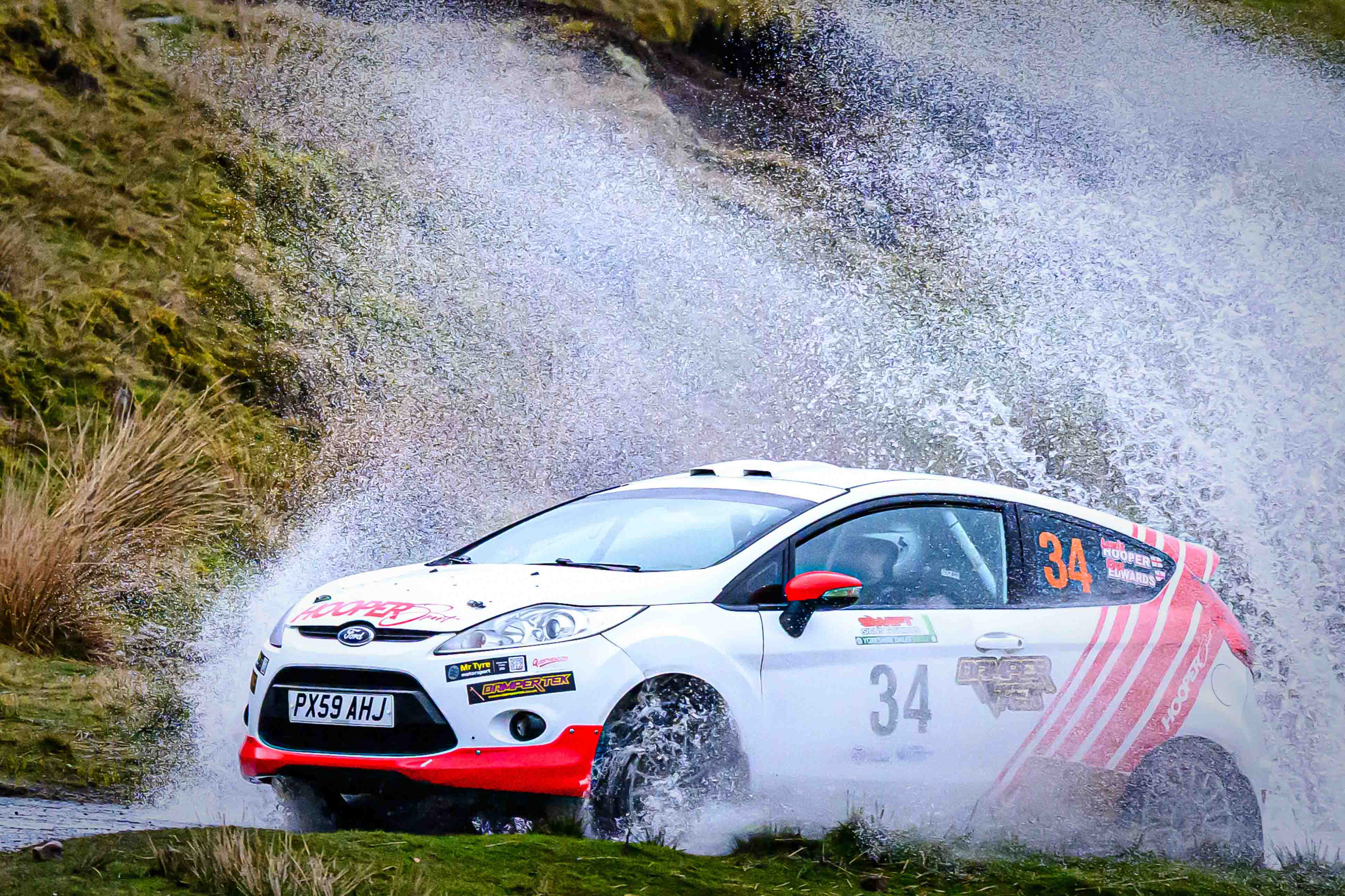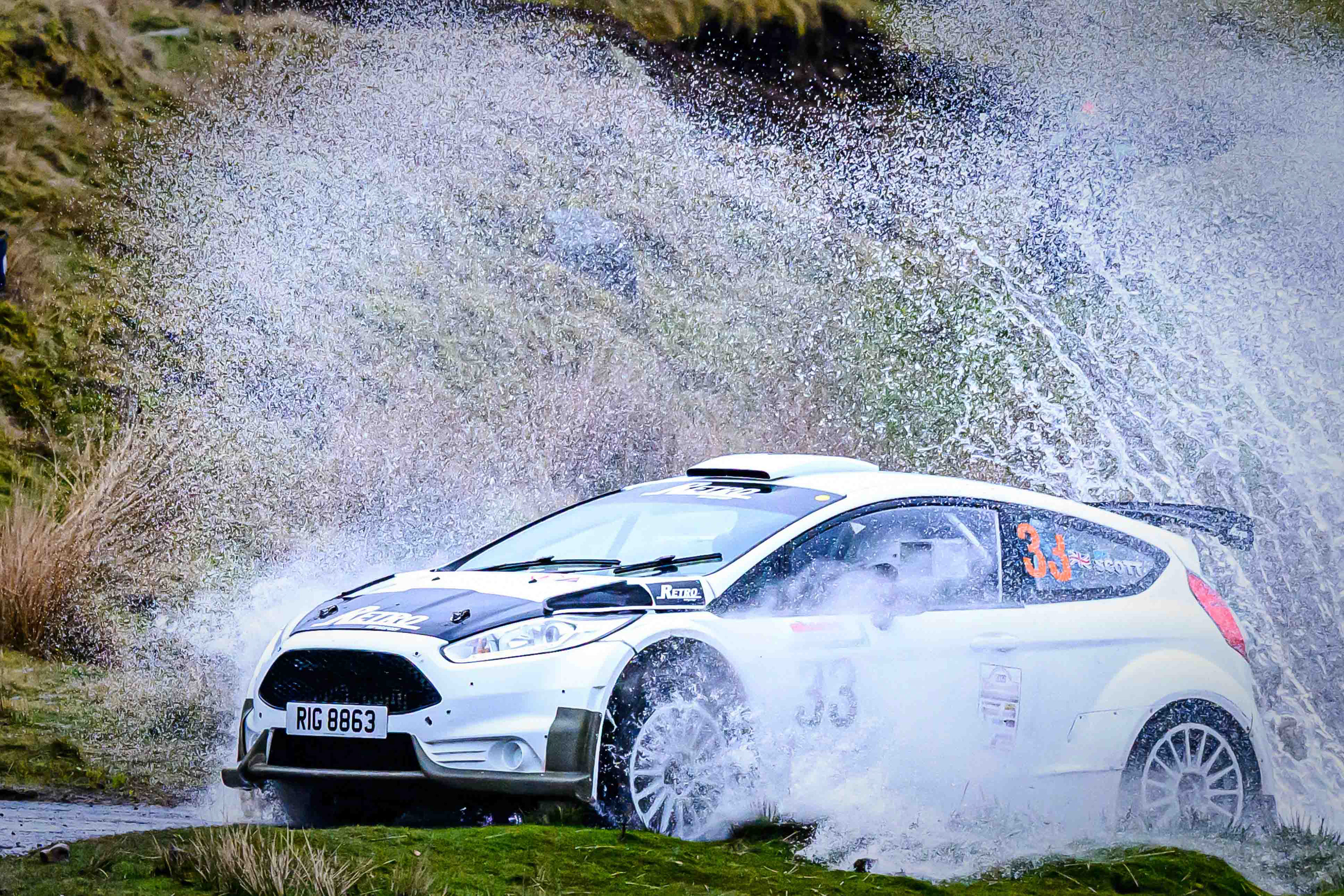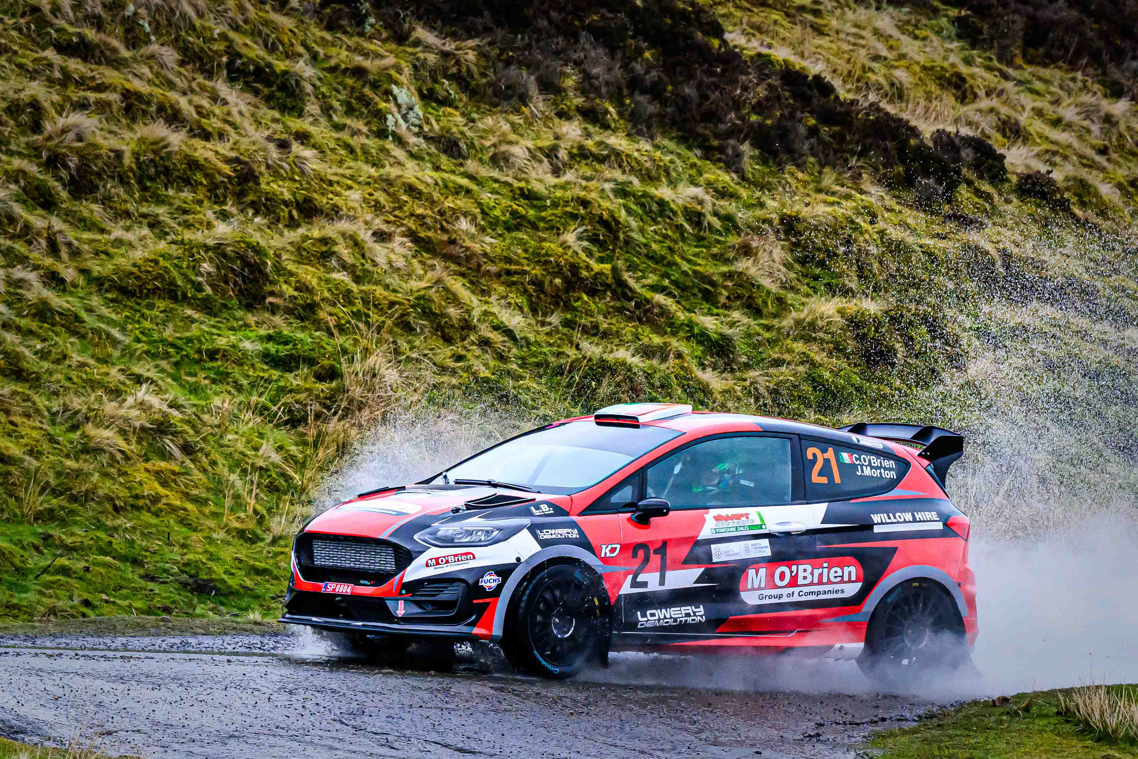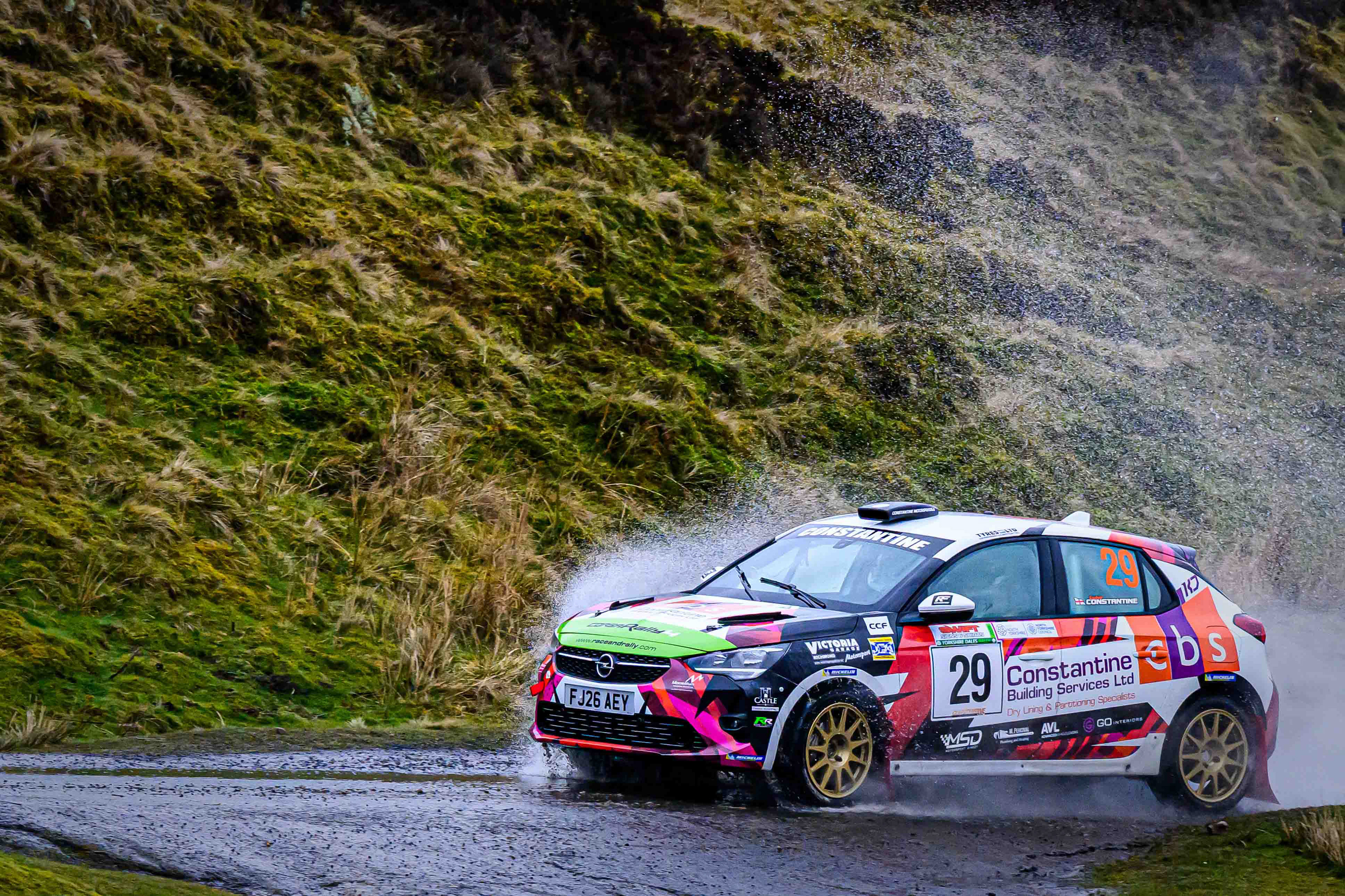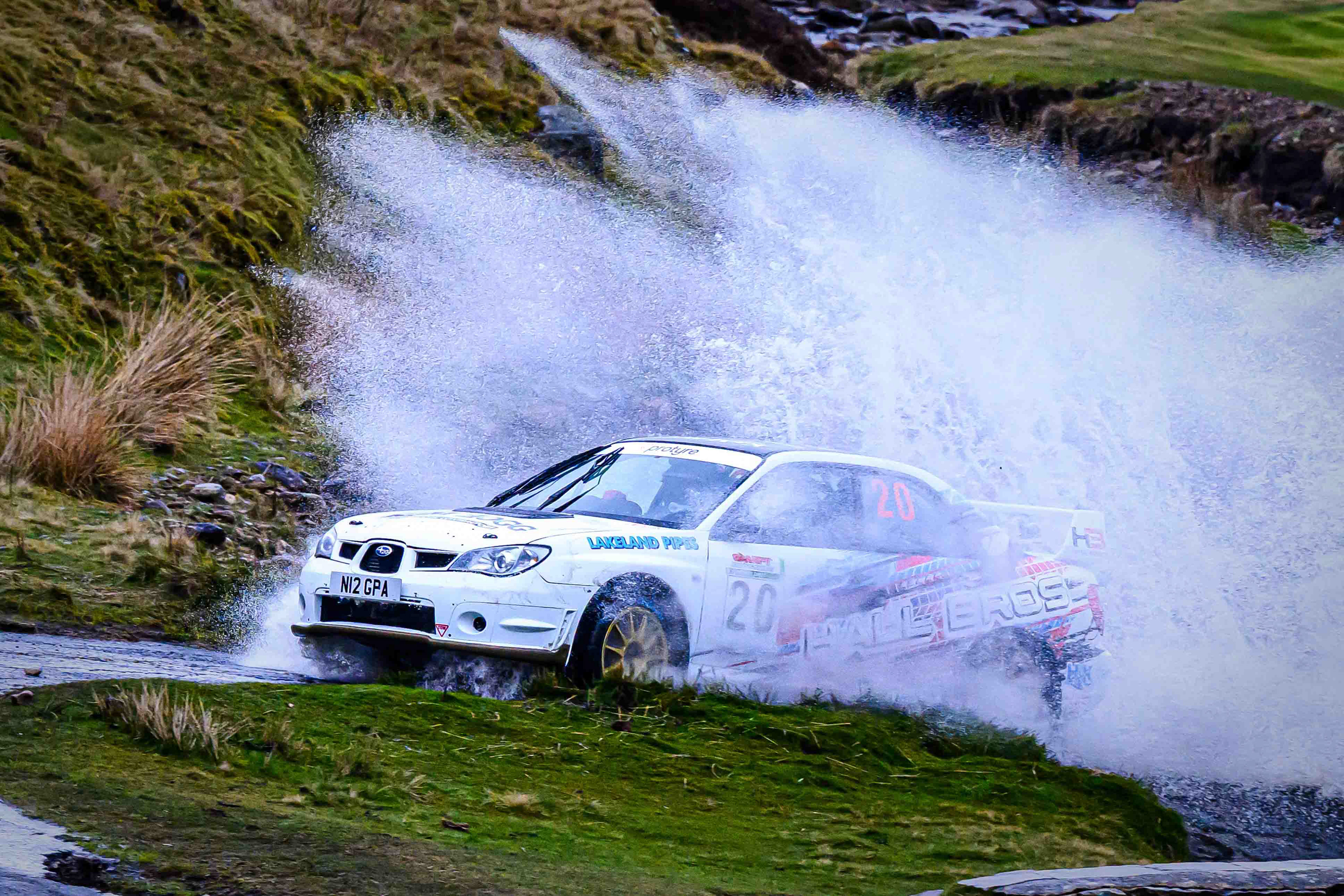 You hear it long before you see it: a rising note, a shift in tone, the unmistakable urgency of a rally car being driven with intent. When it burst into view and hit the watersplash, the whole scene changed. A sheet of spray lifted into the air, the sound cracked across the valley, and suddenly the Dales weren’t just watching — they were part of it.