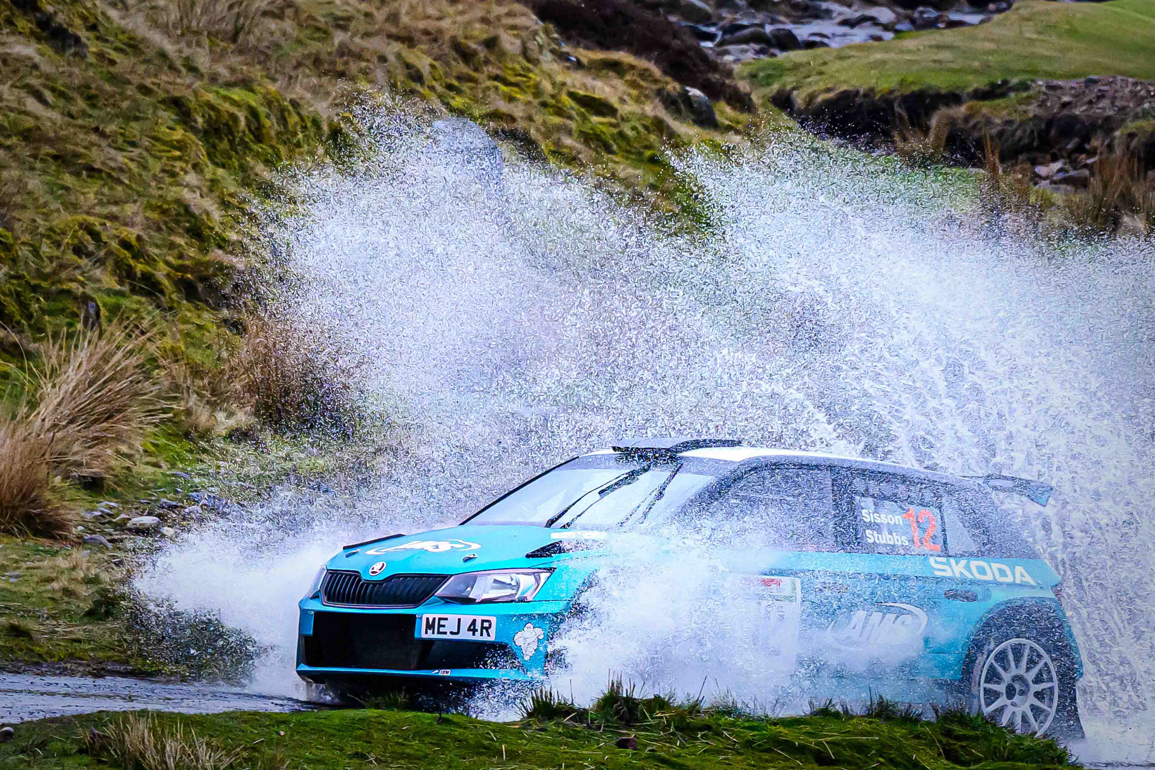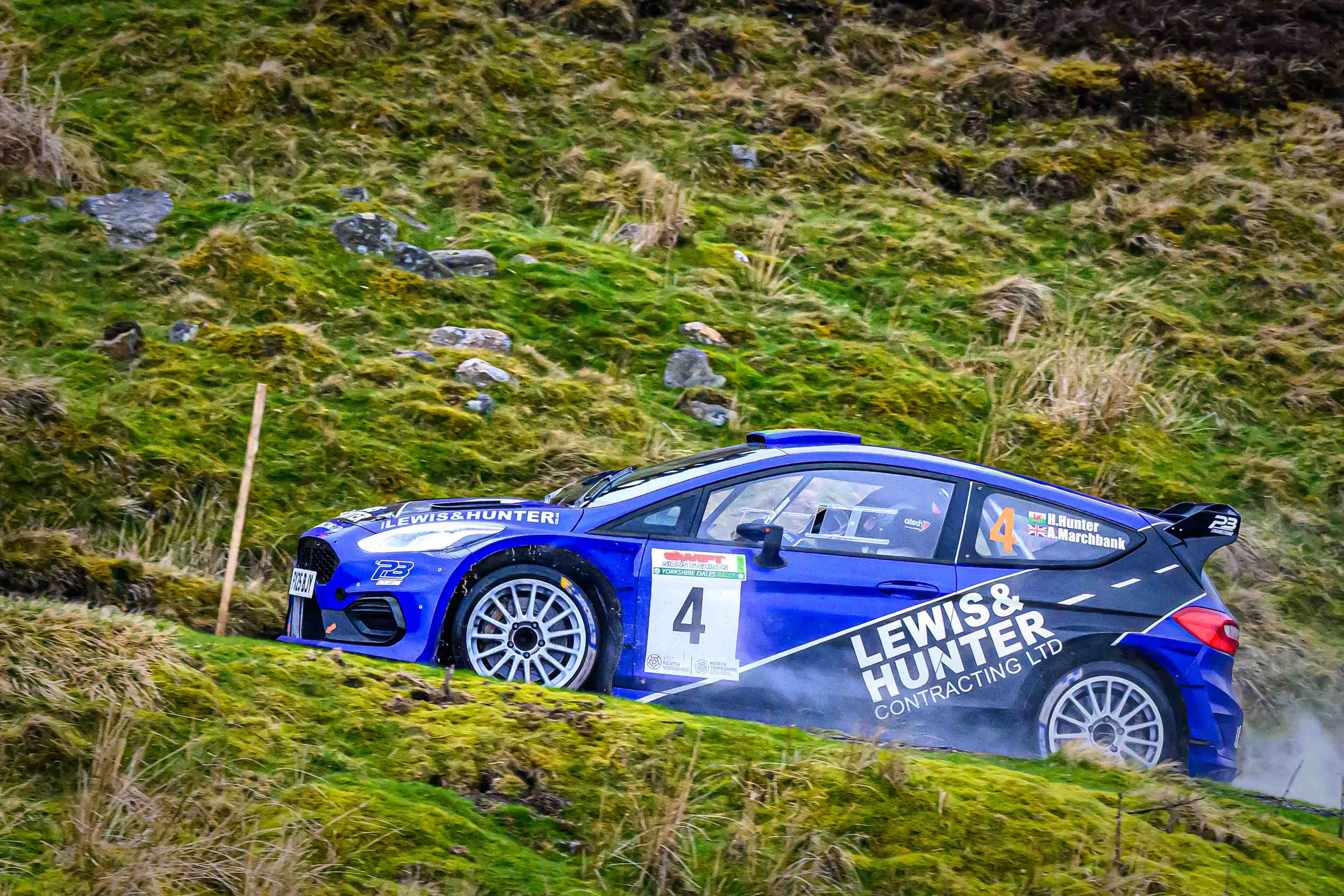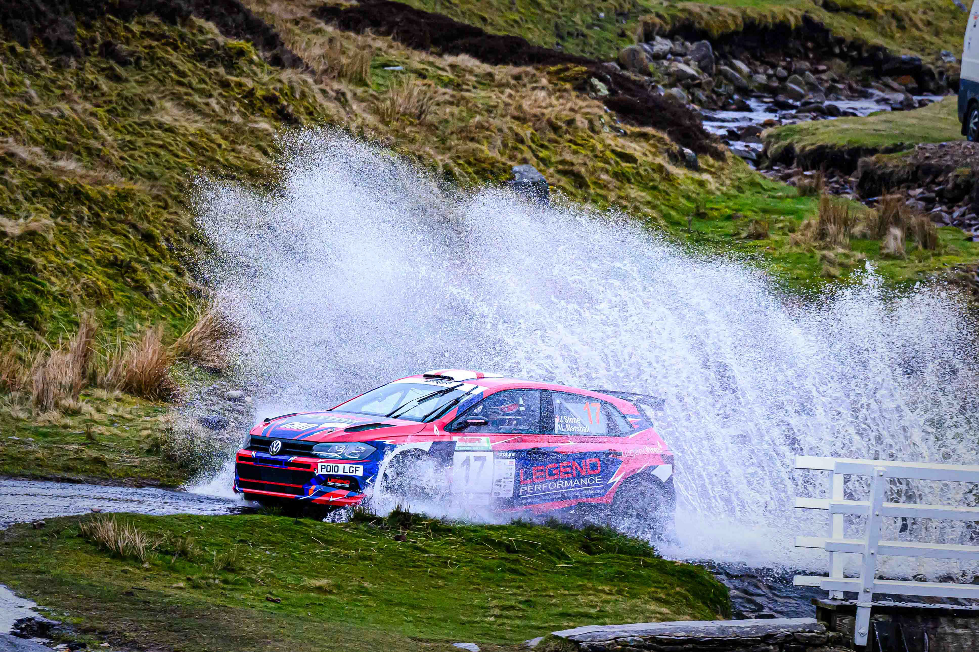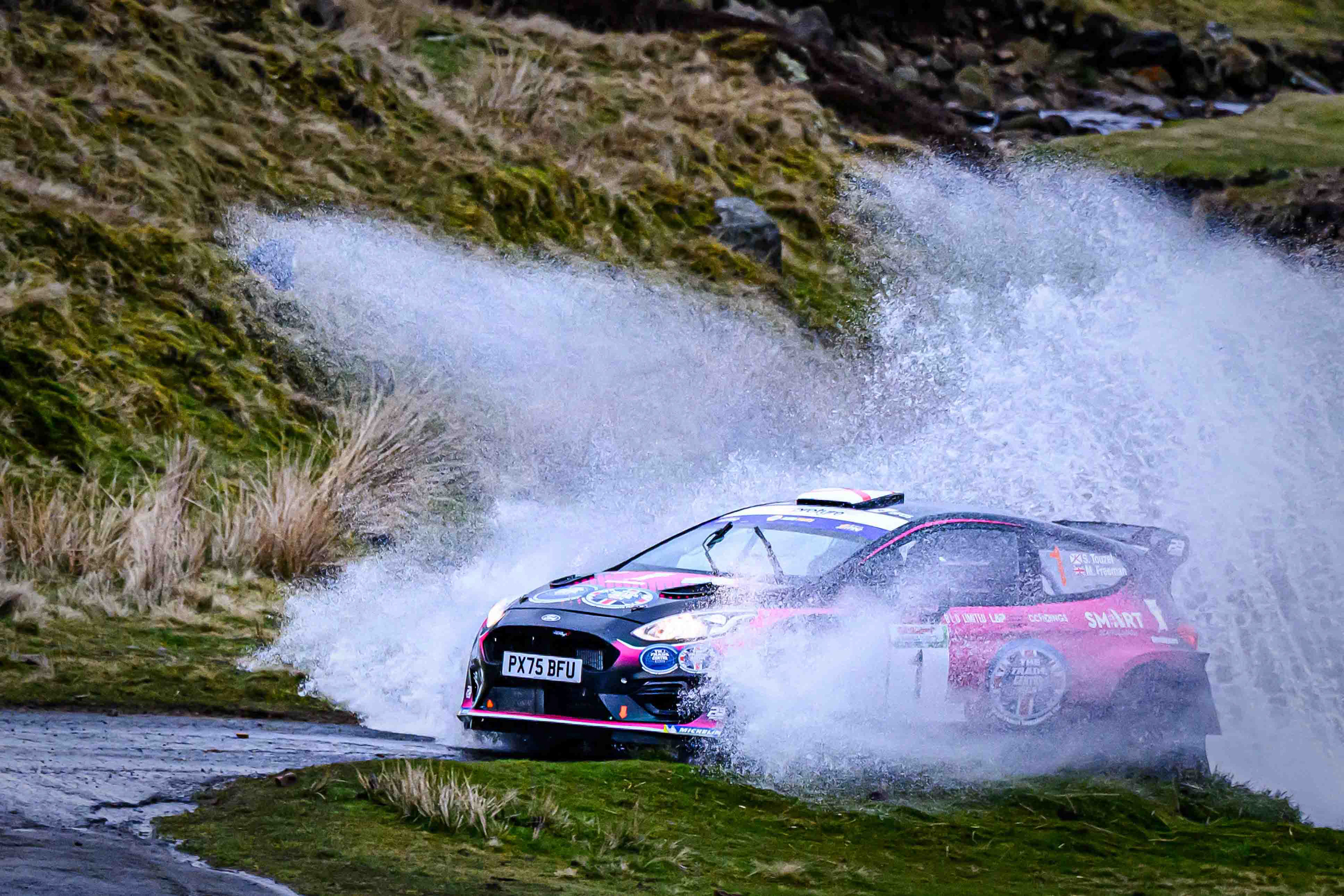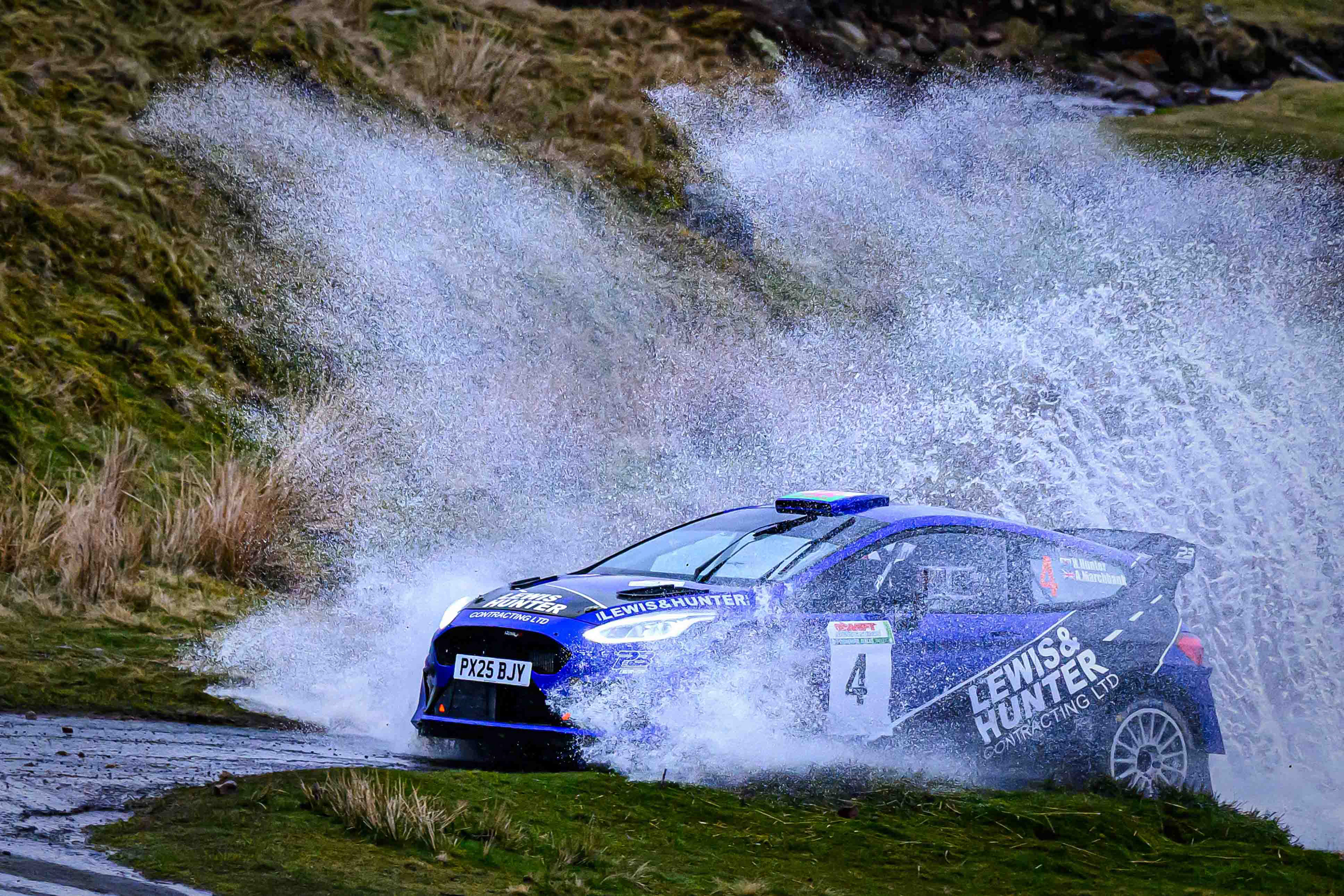 You hear it long before you see it: a rising note, a shift in tone, the unmistakable urgency of a rally car being driven with intent. When it burst into view and hit the watersplash, the whole scene changed. A sheet of spray lifted into the air, the sound cracked across the valley, and suddenly the Dales weren’t just watching — they were part of it.