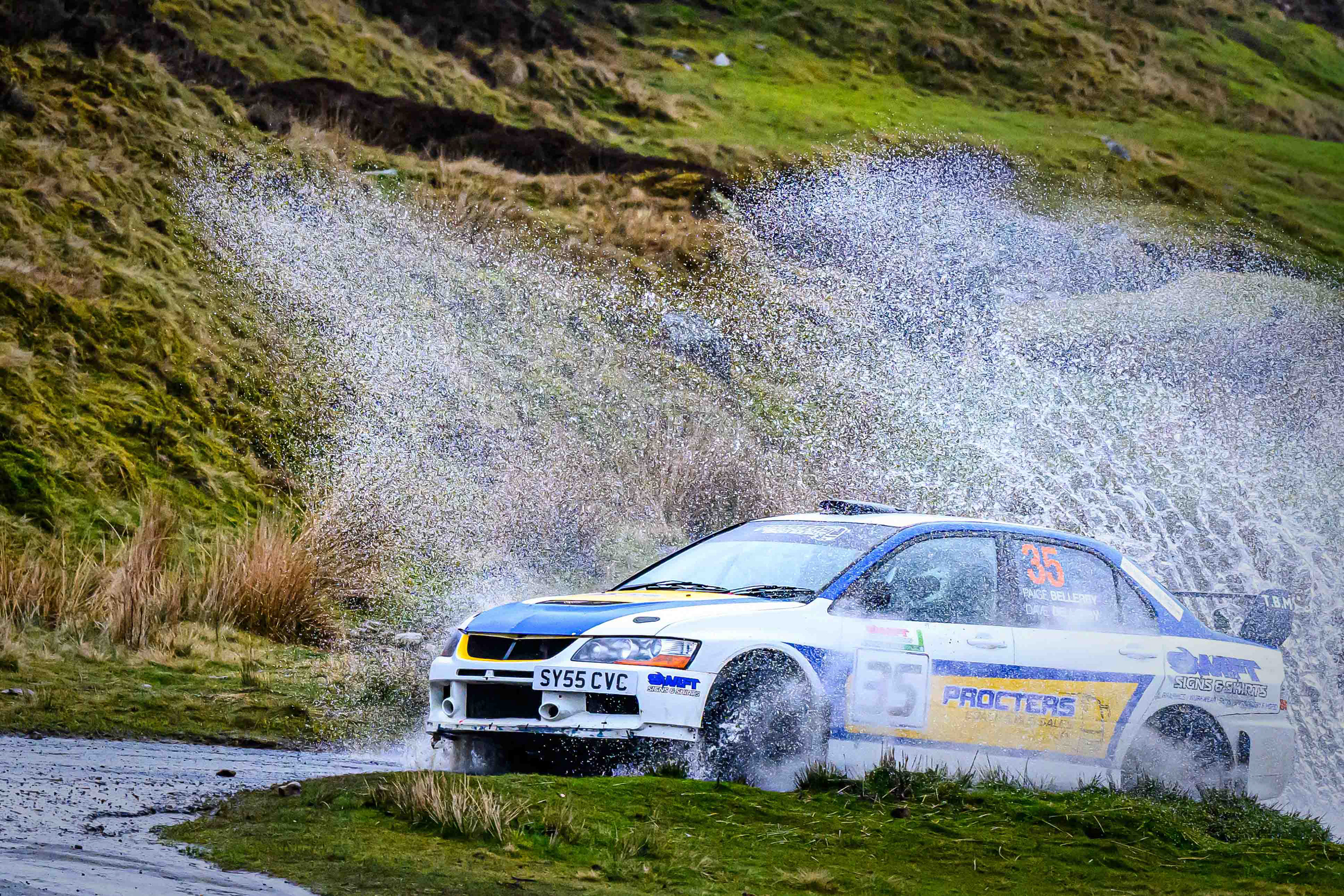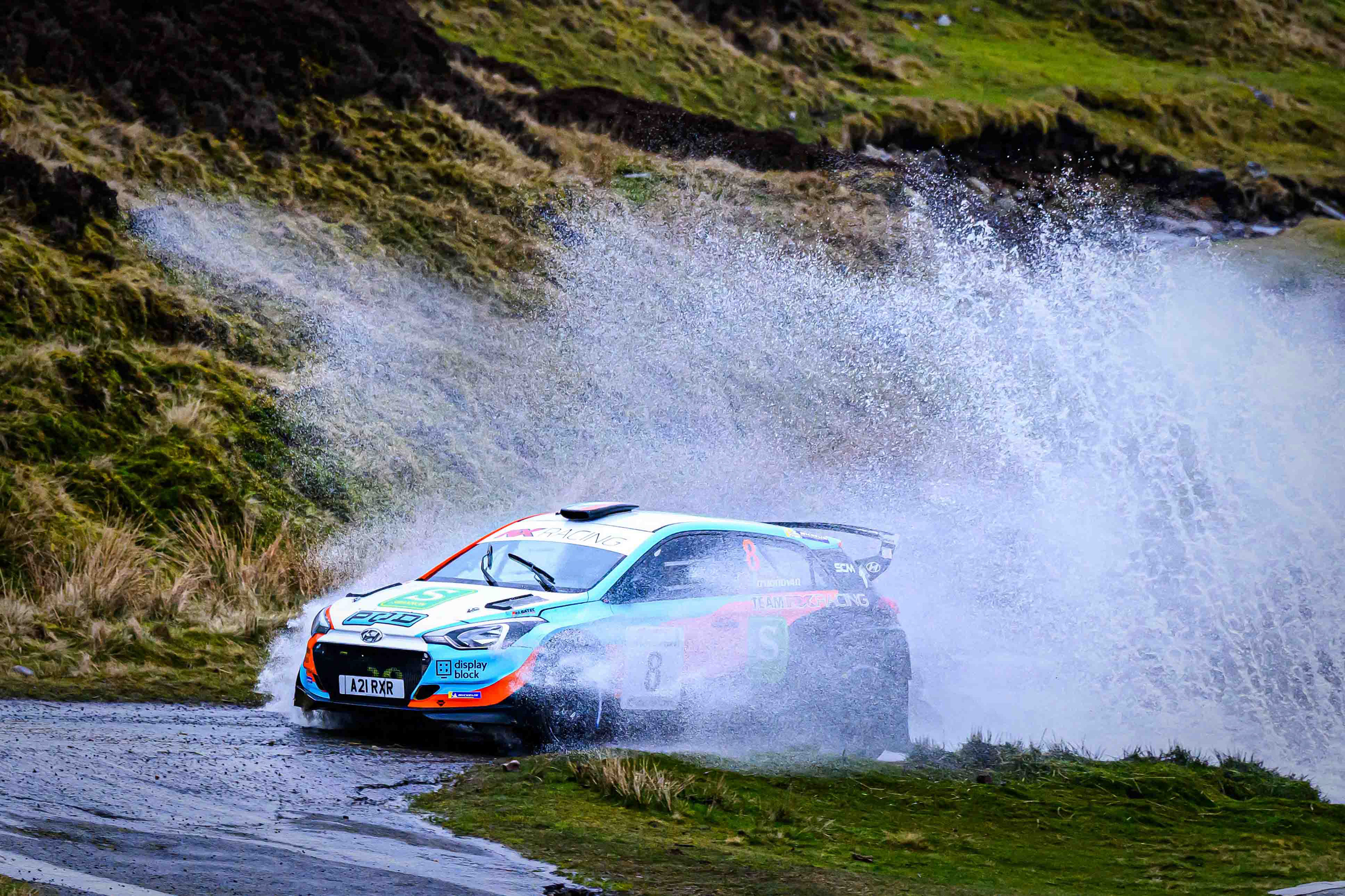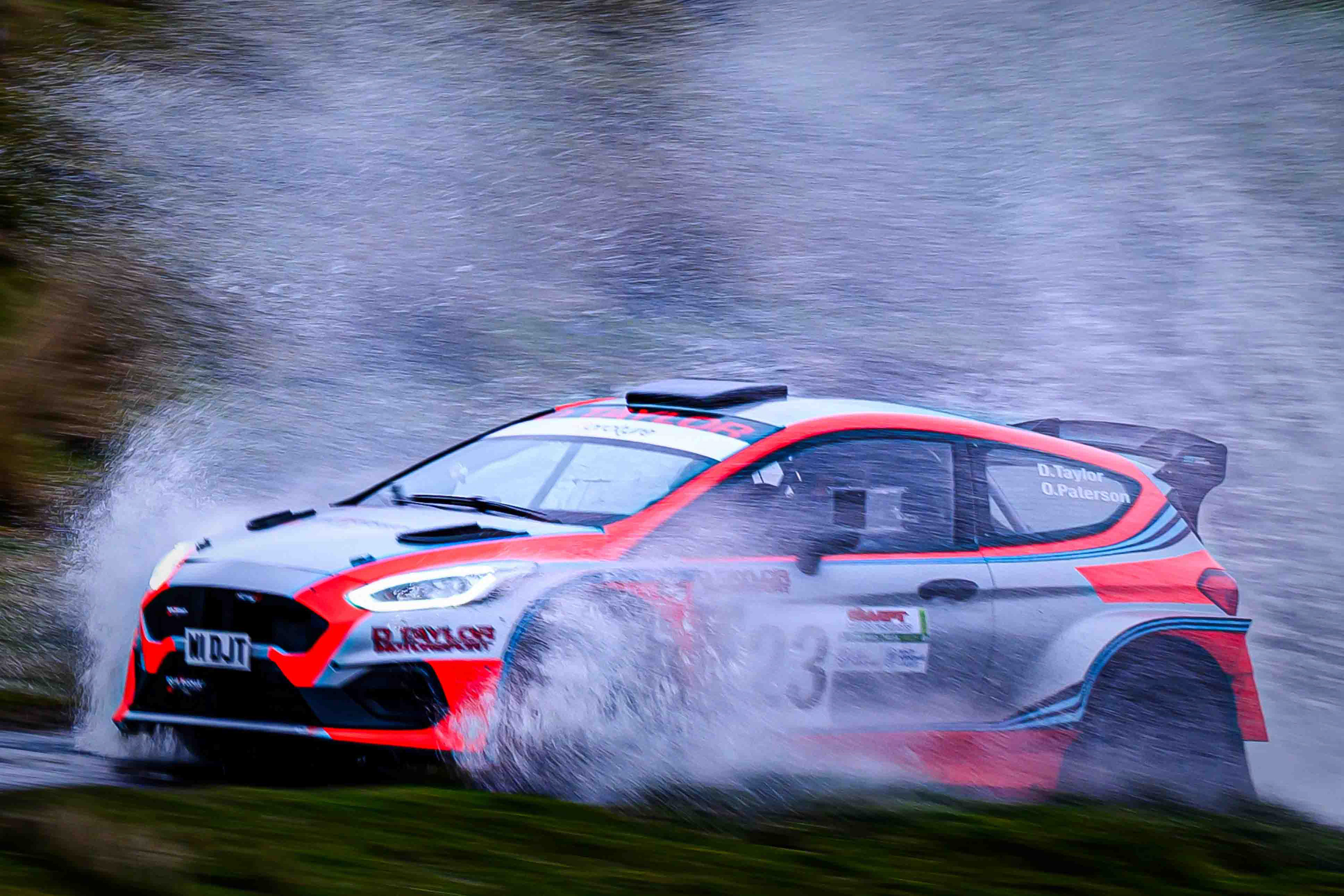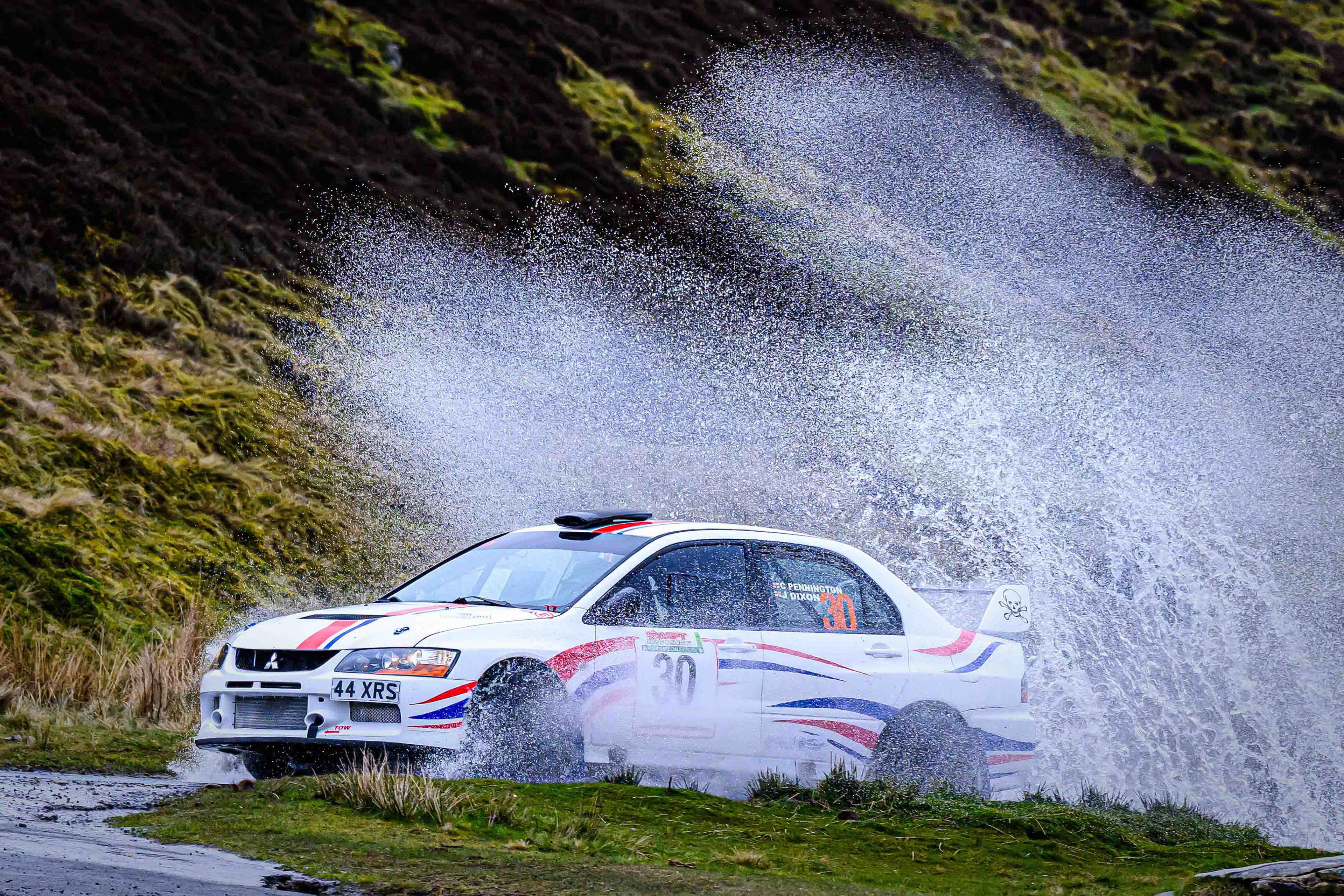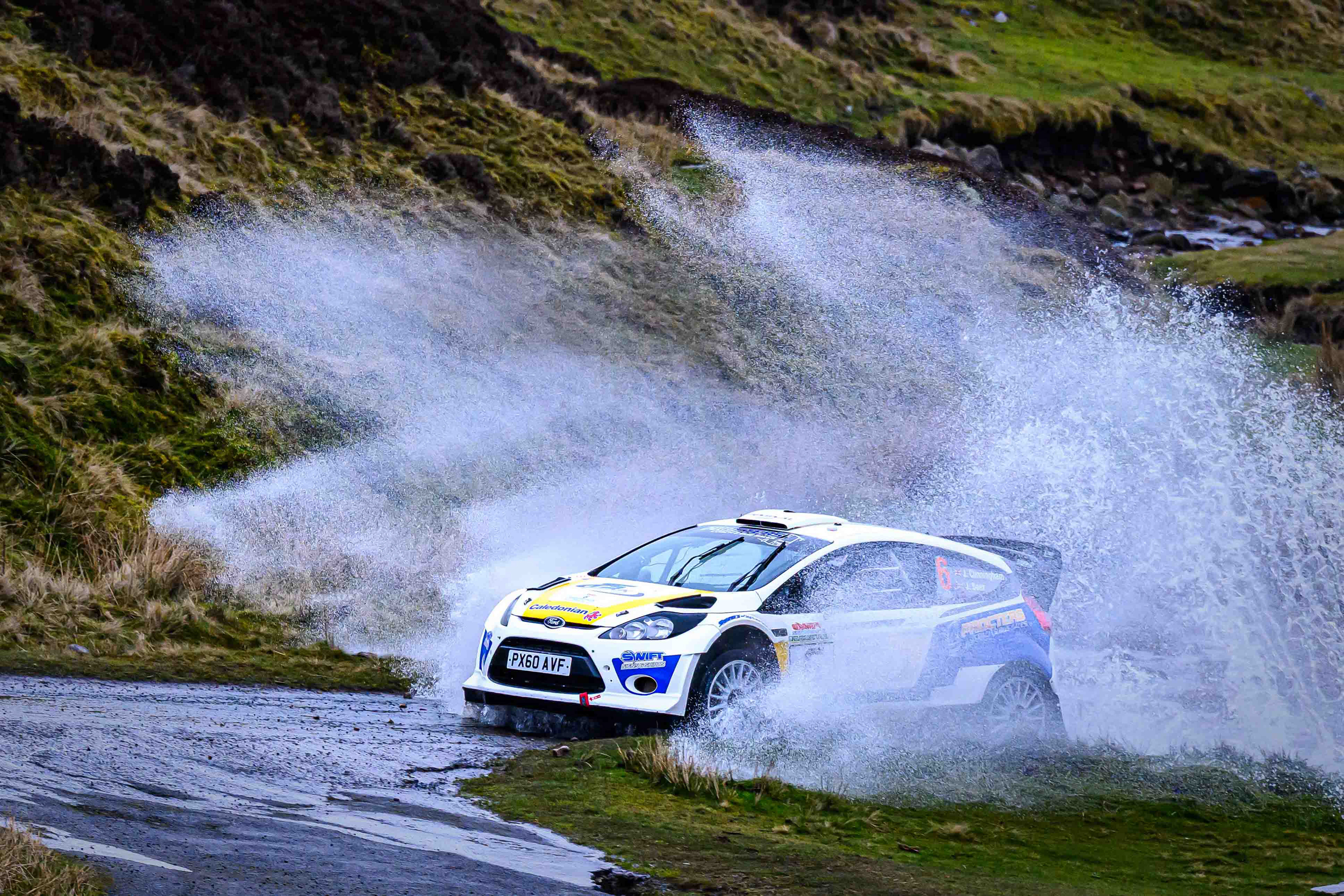 You hear it long before you see it: a rising note, a shift in tone, the unmistakable urgency of a rally car being driven with intent. When it burst into view and hit the watersplash, the whole scene changed. A sheet of spray lifted into the air, the sound cracked across the valley, and suddenly the Dales weren’t just watching — they were part of it.
